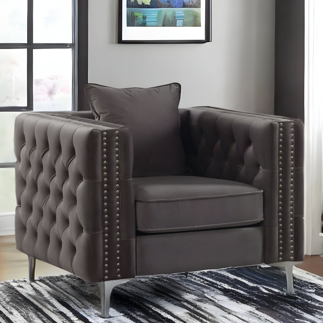 - Tufted stitching adds to the visual and textural delight of this chair.