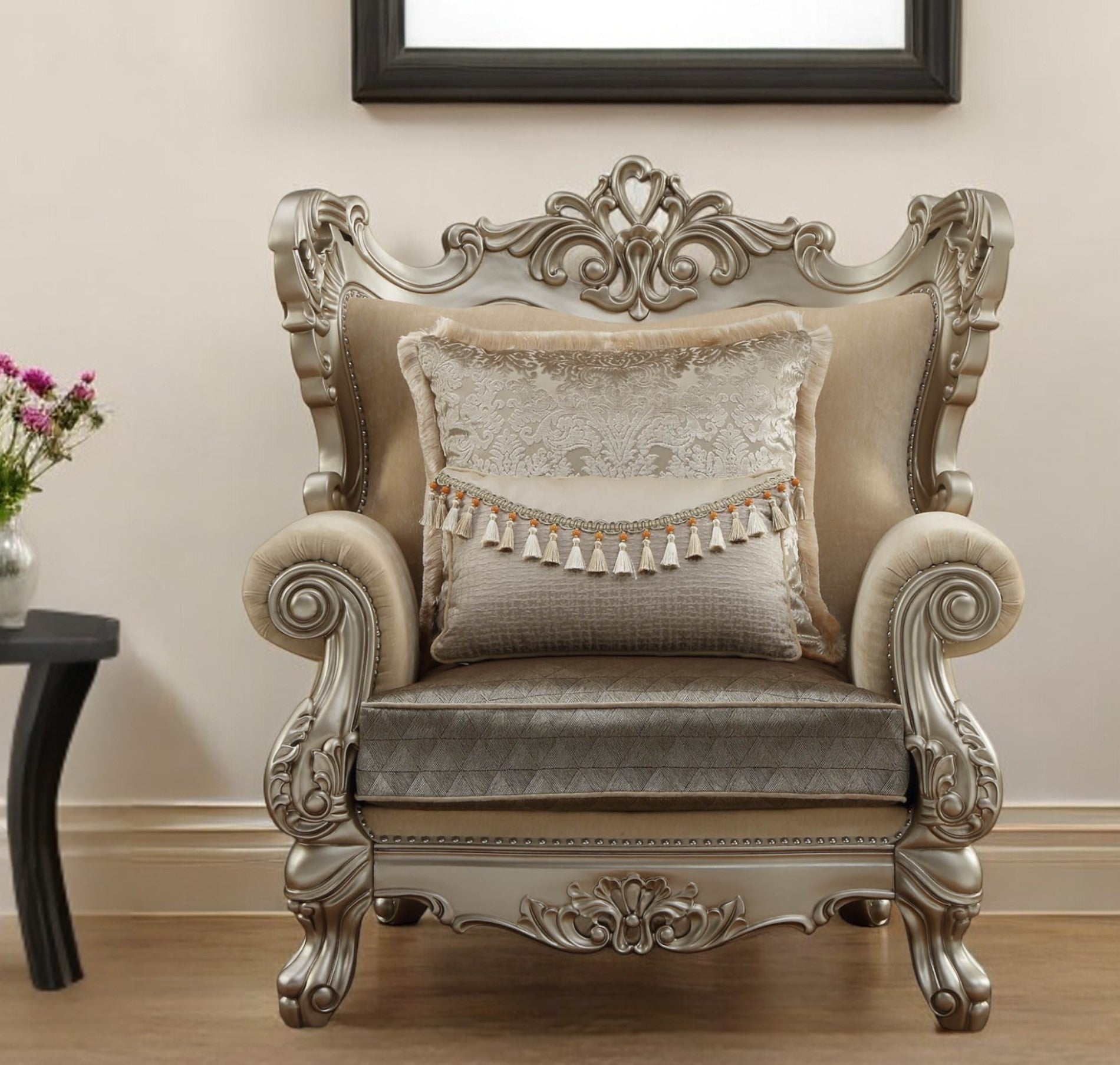 - Includes sturdy legs in a champagne coloration that compliment the chair.