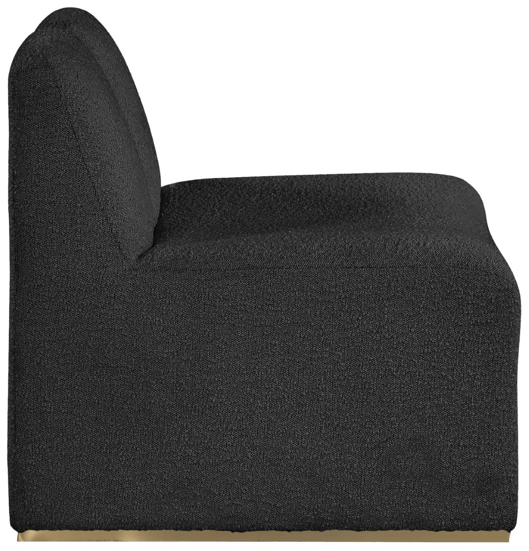 - Feature 1: Rich Black Boucle Fabric