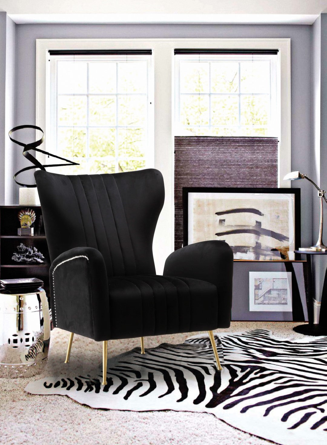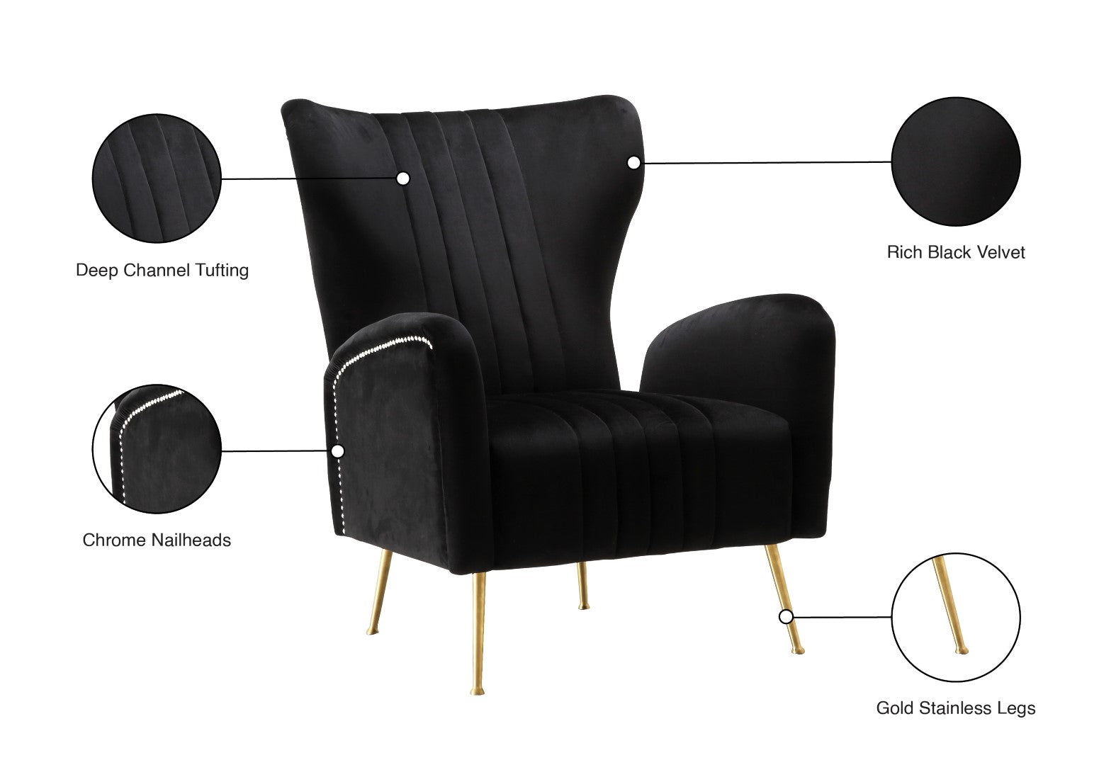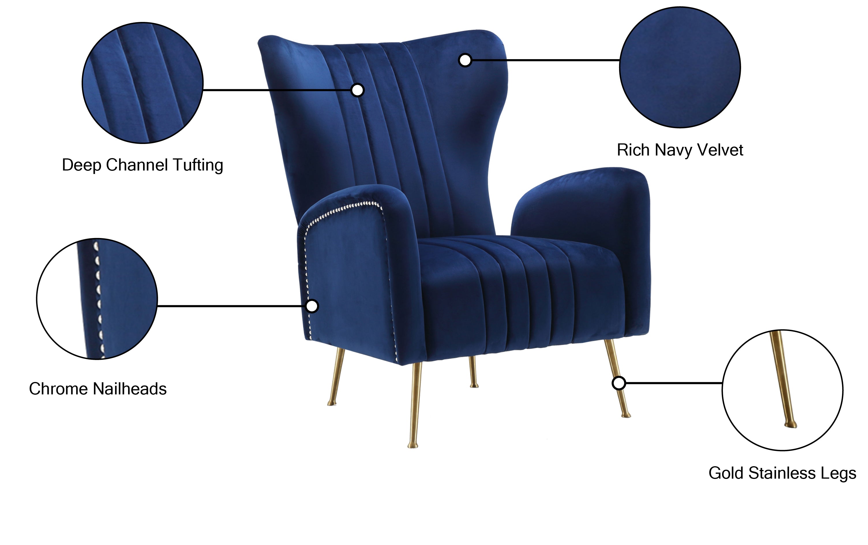- Material: Velvet / Engineered Wood / Stainless Steel / Foam