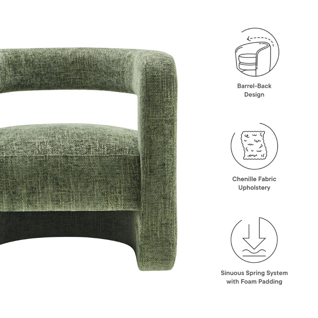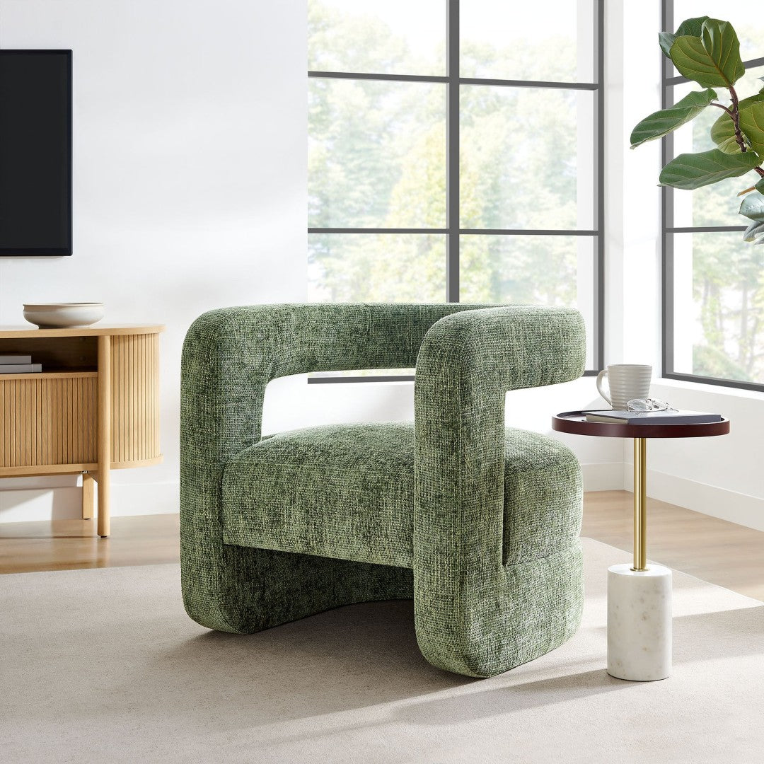 Elevate your living space with the Jaylin Upholstered Chenille Accent Chair — a modern statement piece that blends sculptural design with plush comfort. Its distinctive U-shaped, open-back frame and thick curved arms create a floating visual effect while a generously padded circular seat delivers a cozy place to read, relax, or entertain. Durable construction and soft chenille upholstery make this chair as practical as it is stylish, fitting effortlessly into bedrooms, living rooms, home offices, or lounge areas.