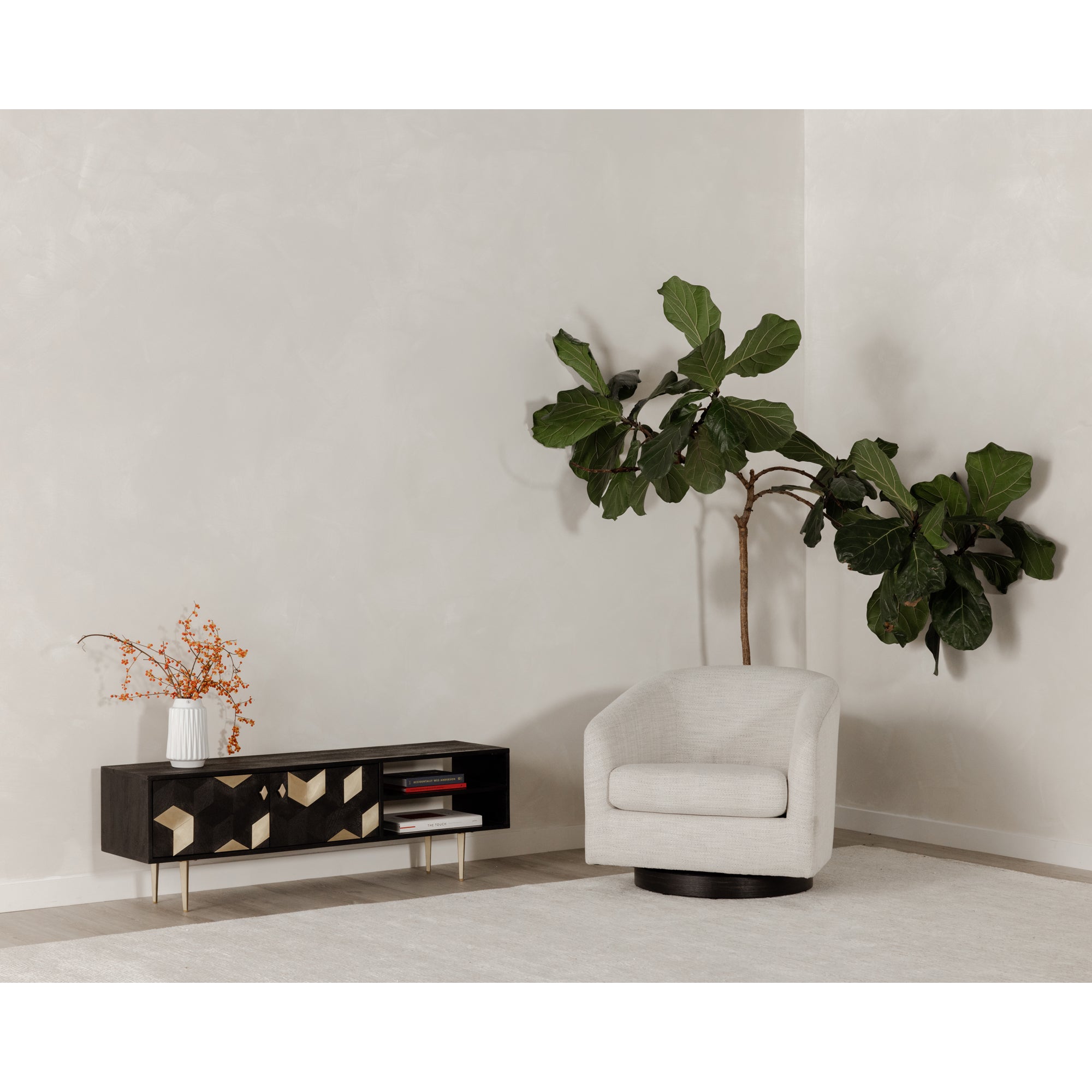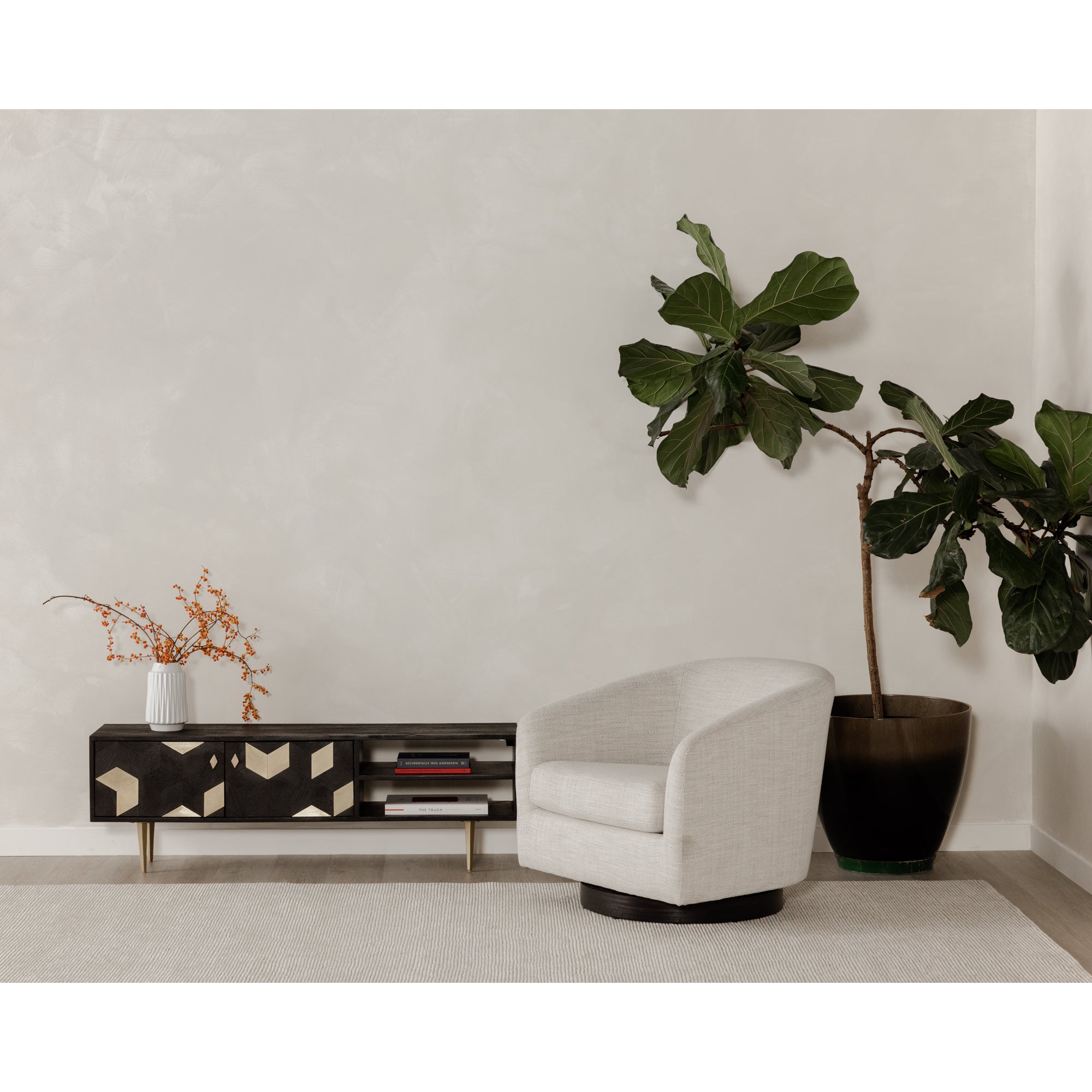 Light and cheerful. Calm and relaxed. The Oscy swivel chair is a cloud of comfort that brings airy energy and convenience into your living room with its 360° swivel, floating base design. Idyllic for a reading nook or as an accent chair, Oscy creates a chic retreat with softly textured fabric upholstery that looks fresh and keeps things cozy.