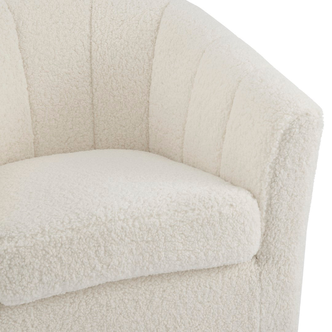 - Feature 1: Chic parlor accent chair in texture-rich velvet fabric for the latest art deco style. Featuring web suspension with high density foam cushion for all-day comfort. And, luxe fashion upholstery in Shearling Beige and Velvet Black. 360-degree swivel frame provides extra comfort and stability. Fixed cushion.