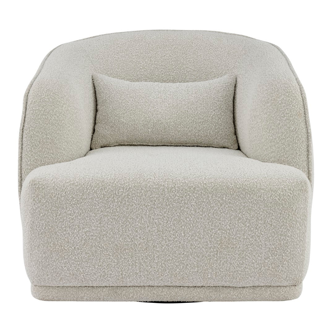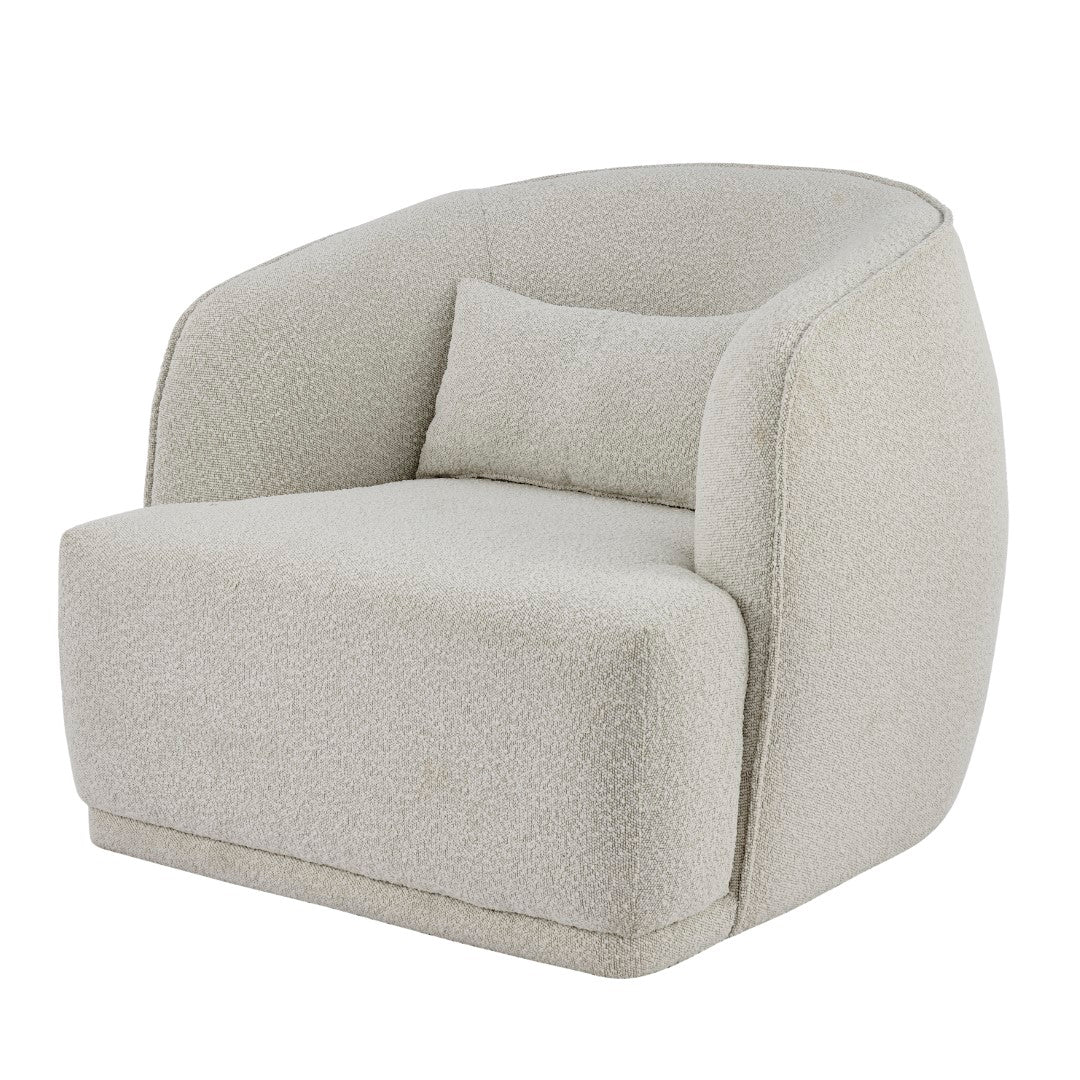 - Feature 1: Modern Lounging - generous size in high density foam cushion and low slung profile create a fun and cozy relaxing chair for the stylish living room! Additionally, soft and texturally chic boucle fabric in Black provide stylish features to the overall design. Lumbar cushion is included.