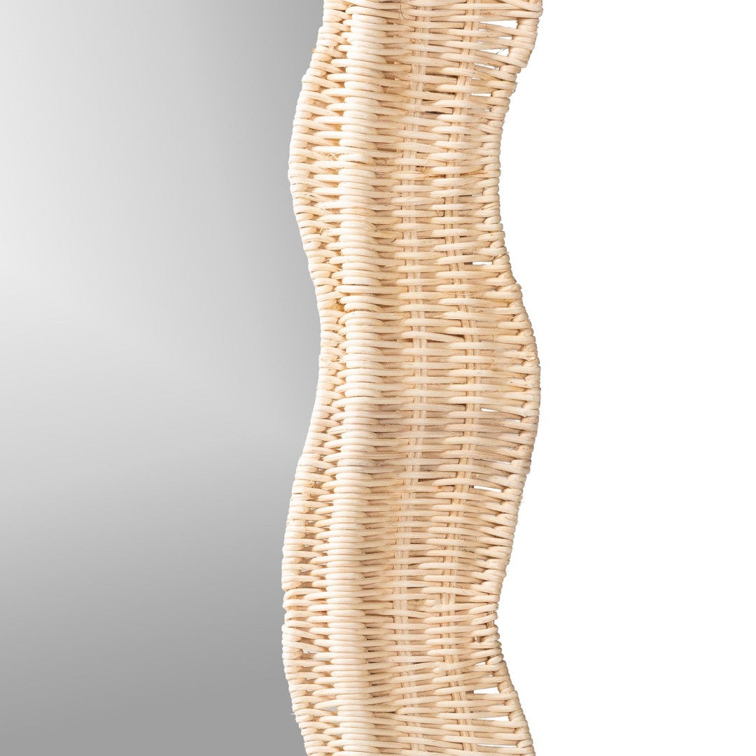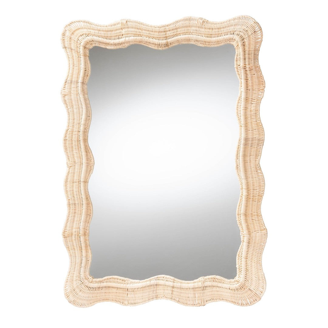 - Scalloped rattan border for a distinctive bohemian silhouette that softens rectangular mirror lines