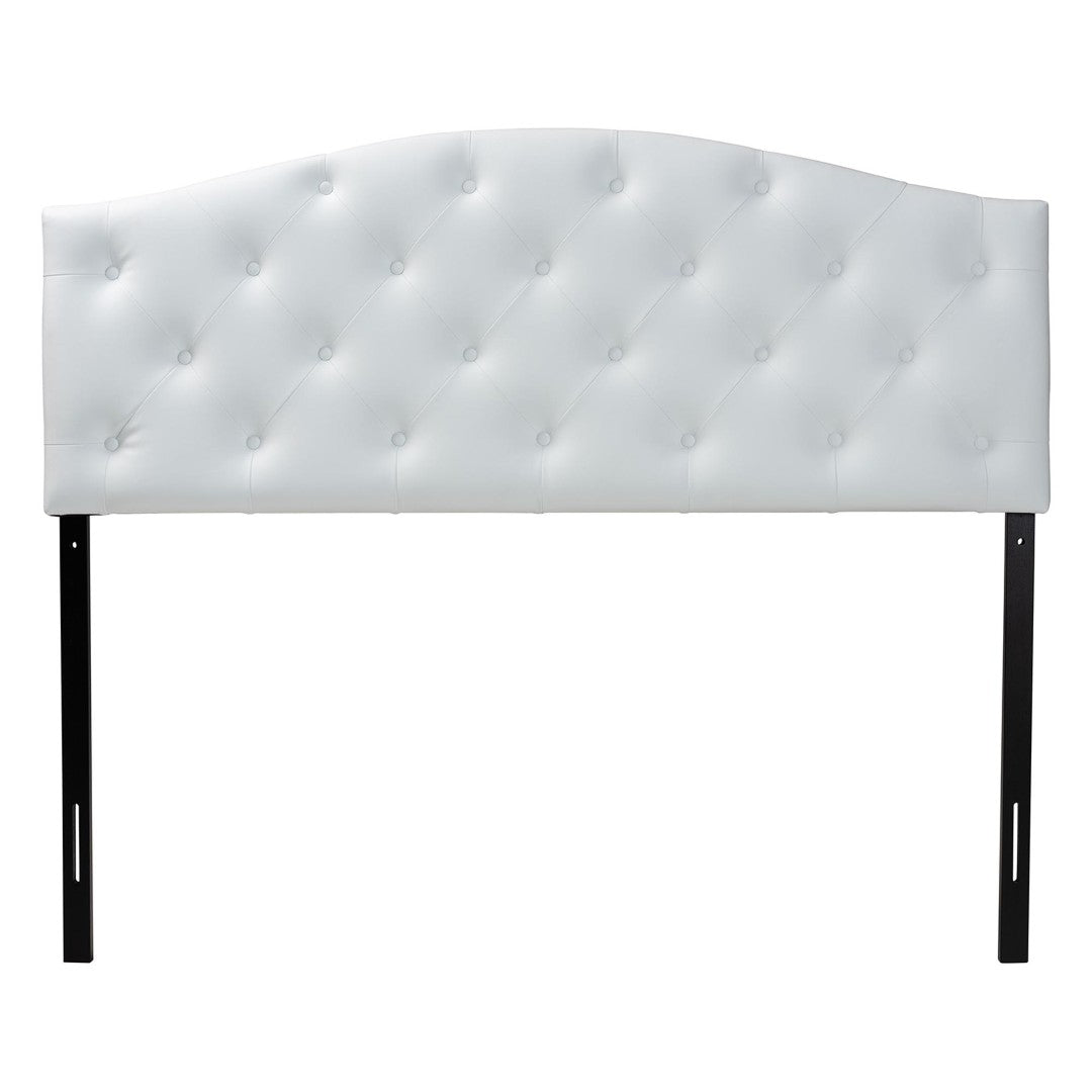 Update your bedroom with the Myra Upholstered Headboard — a refined blend of modern simplicity and classic detailing. Fully upholstered in easy-care white faux leather and finished with elegant button-tufting and a scalloped silhouette, this headboard adds visual interest, cushioned comfort, and reliable support to a full-size bed setup.