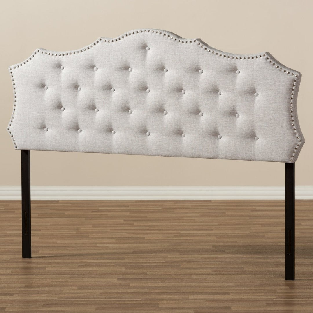 Create a luxurious focal point for your bedroom with a headboard that blends modern lines and classic detail. The Aurora upholstered headboard pairs a softly curved silhouette and button-tufted surface with silver nailhead trim for a refined, hotel-inspired look. Exceptionally cushioned and built on a solid rubberwood frame, it offers both style and supportive comfort when you sit up to read or relax.