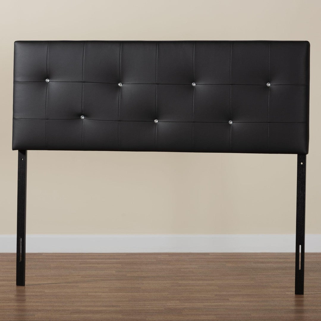Elevate your bedroom with the Dalini headboard — a sleek, contemporary piece that combines modern lines with glamorous detailing. Fully upholstered in white faux leather and accented with faux crystal button tufting, this headboard provides both visual appeal and cushioned comfort, transforming a standard bedframe into a refined focal point.