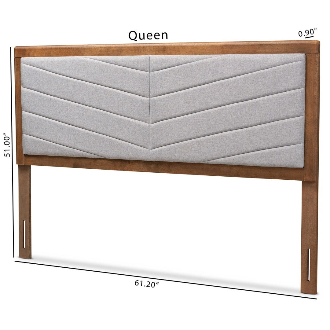 Give your bedroom an instant contemporary upgrade with the Iden headboard. Its clean walnut-brown wood frame and chevron-tufted light grey fabric create a modern, cozy focal point while the foam padding provides comfortable back support for reading or relaxing. Adjustable leg heights and sturdy construction make it a versatile, long-lasting choice for a queen bed.