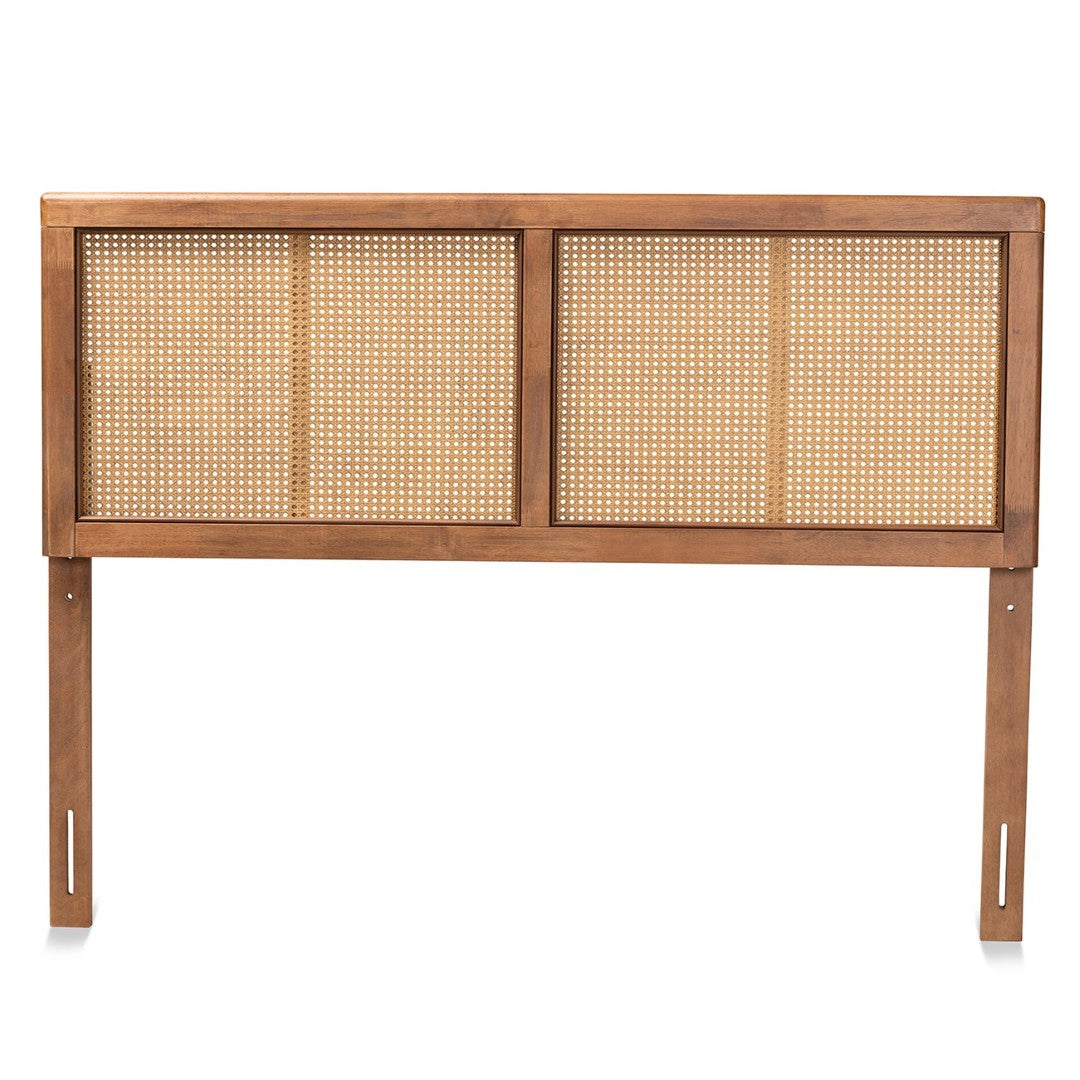 Bring mid-century charm and airy texture to your bedroom with this Gilbert headboard. Crafted with a warm ash walnut finish and woven synthetic rattan inset, it blends vintage styling with contemporary functionality—offering comfortable back support for reading or relaxing while allowing easy height customization to suit your bed and decor.