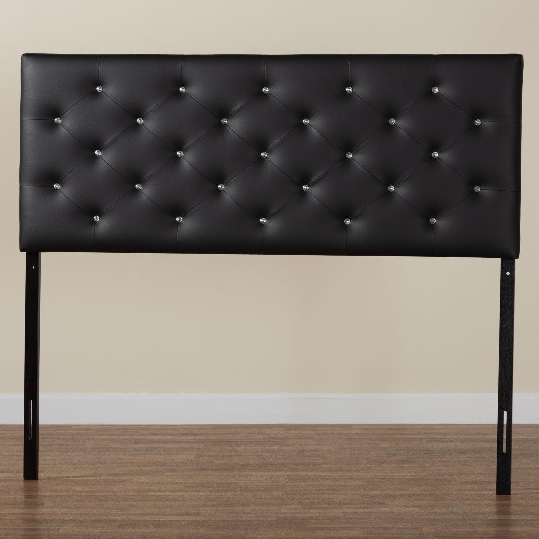 Give your bedroom an instant lift with the Viviana Upholstered Headboard — a modern, tailored statement piece that combines clean lines with luxurious detailing. Fully button-tufted in black faux leather with faux crystal accents, this queen-size headboard brings polished symmetry and soft support to your sleep space while remaining easy to install and adjust for a perfect fit with standard bed frames.
