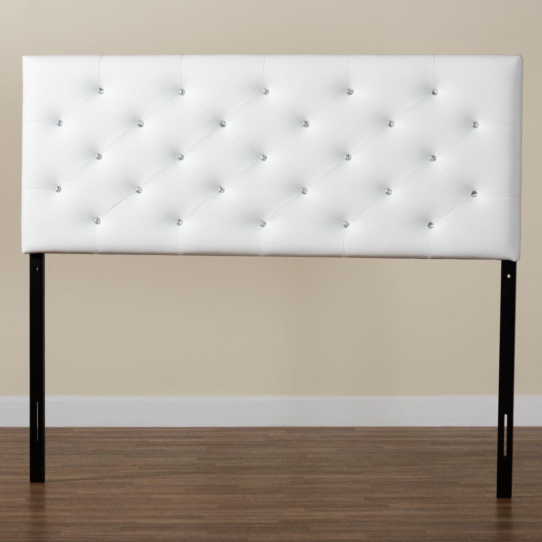 Give your bedroom an instant lift with this modern faux leather headboard, featuring clean lines, button-tufted detailing and subtle faux crystal accents. Designed for both style and comfort, the Viviana headboard combines a sturdy hardwood frame with high-density foam cushioning to create a plush, tailored focal point that complements contemporary and transitional decor.