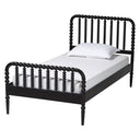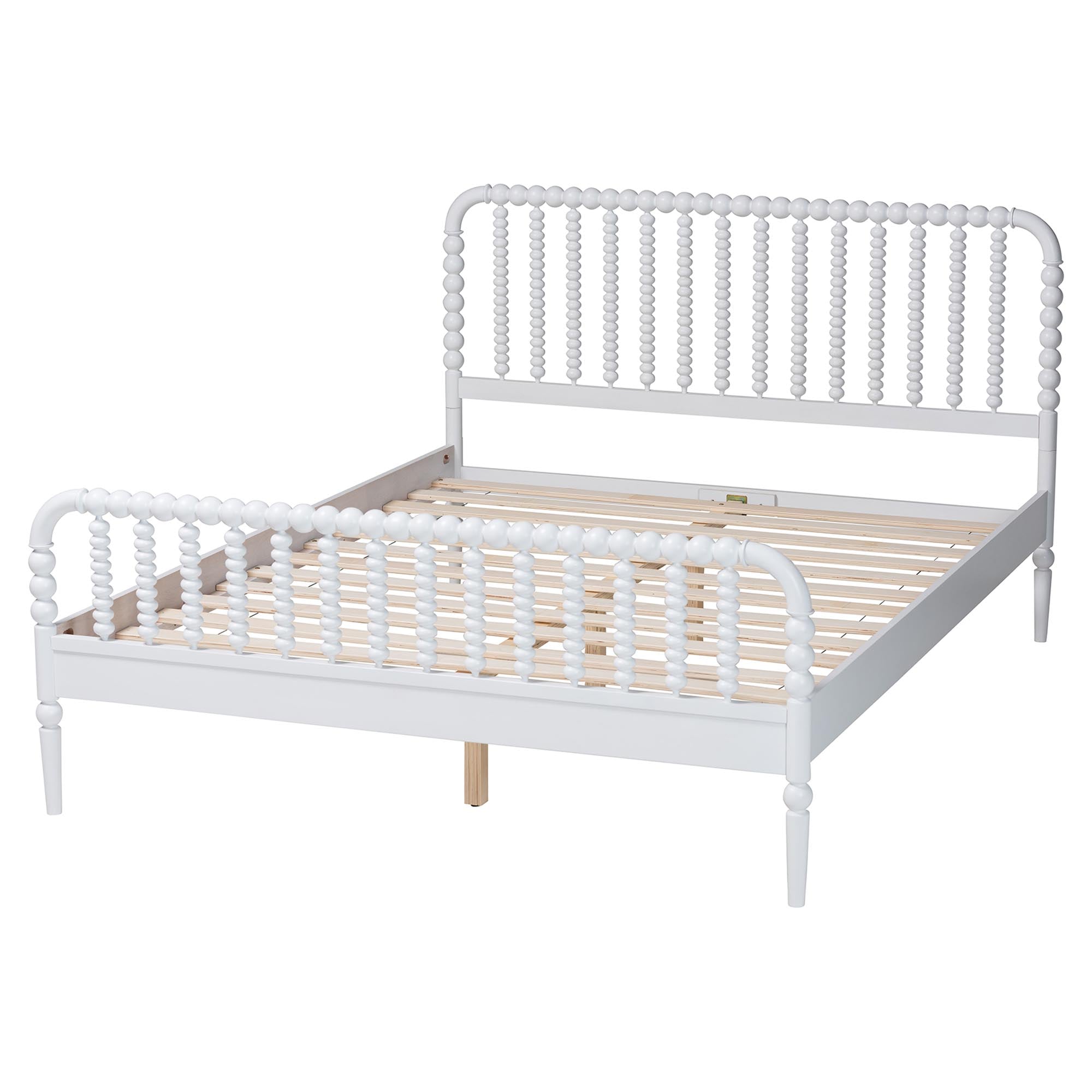 The vintage artistry of the exuberant Lucera platform bed creates an environment of traditional flair in your space. Made in Malaysia, this mid-century inspired piece is crafted from sturdy wood. Turned bobbin embellishments envelop the slatted wood headboard and accent footboard for a captivating and welcoming display. The Lucera requires assembly and utilizes wood slats for mattress support, eliminating the need for a box spring. Tapered legs highlight the vibrant geometry of the piece, making the Lucera platform bed a marvelous centerpiece.