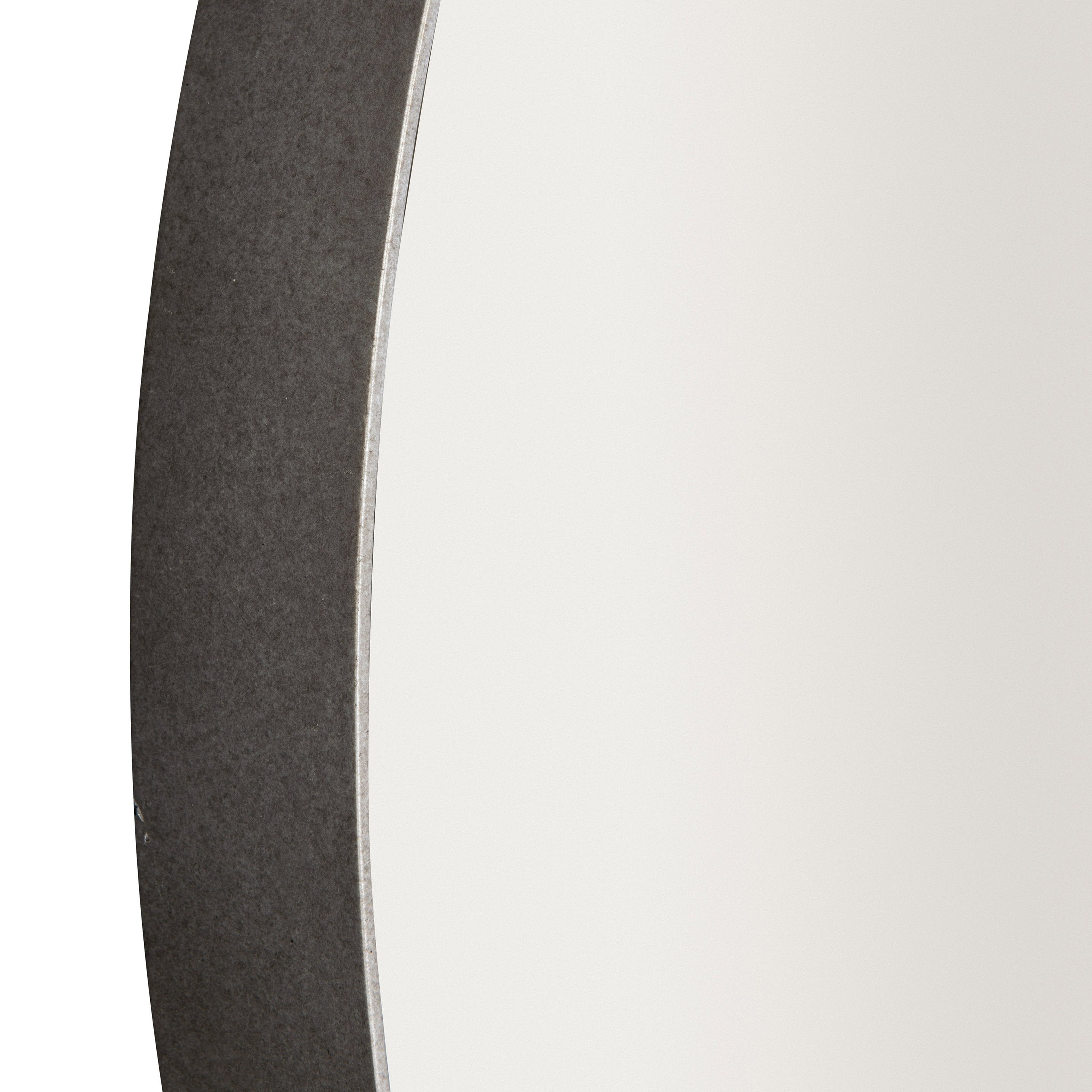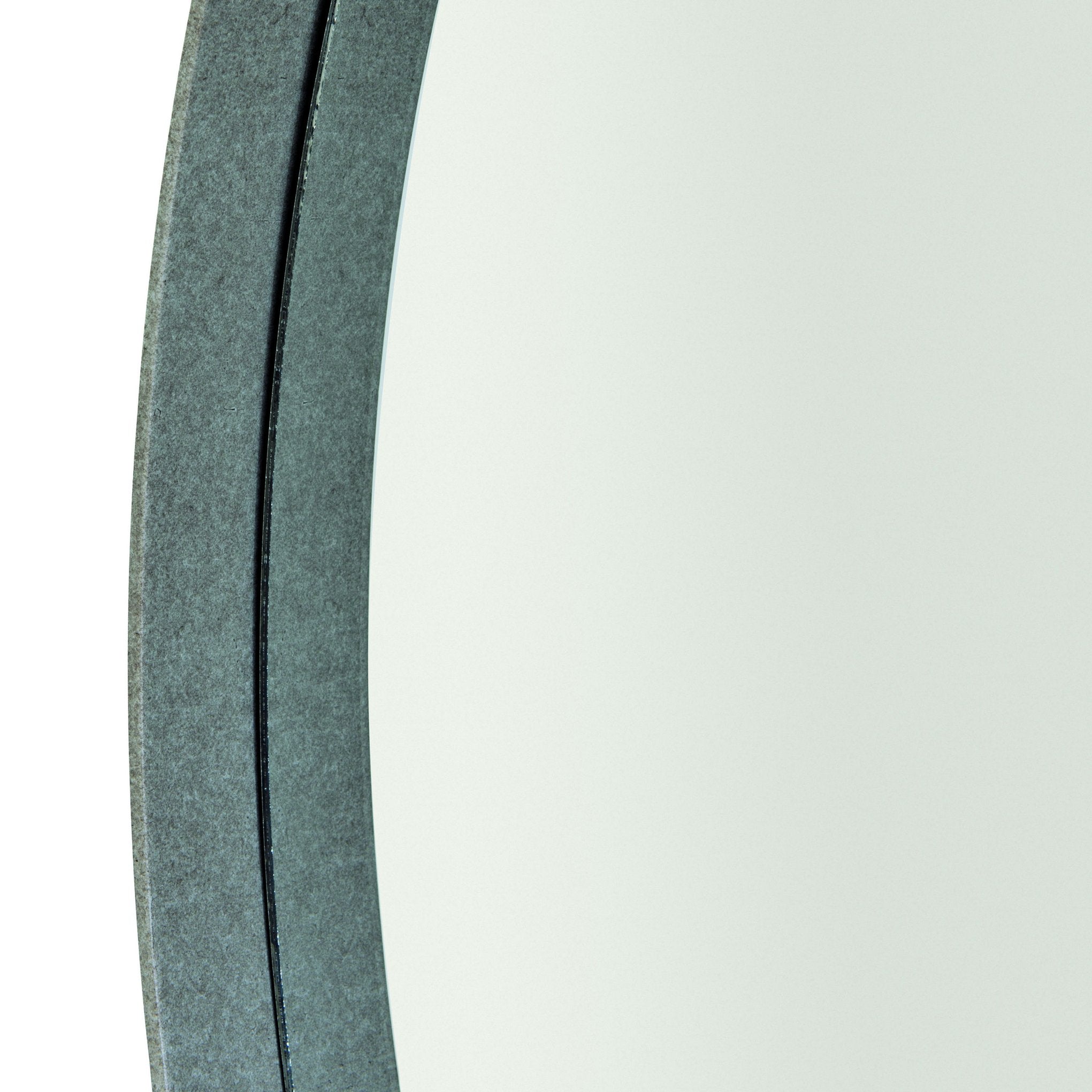 Steel sheet metal frame in Gray Mist finish Inset non-beveled mirrored glass Note: Due to weight, must be hung on stud
