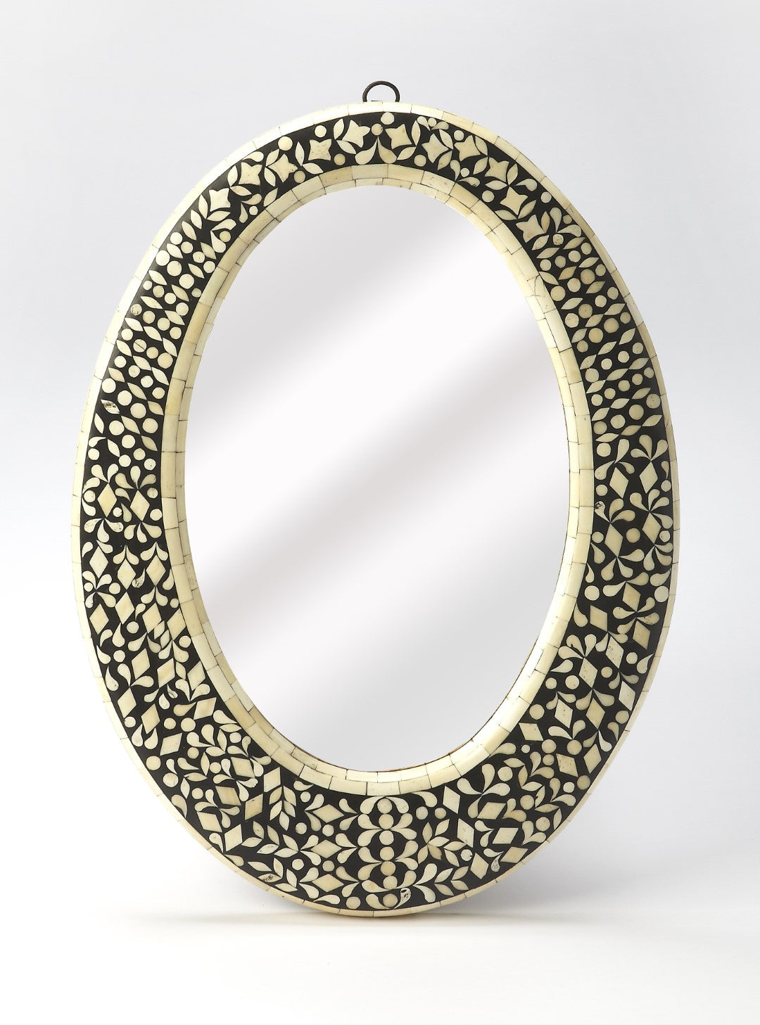 - Materials: Sheesham wood solids, Resin, Bone inlays, Glass
