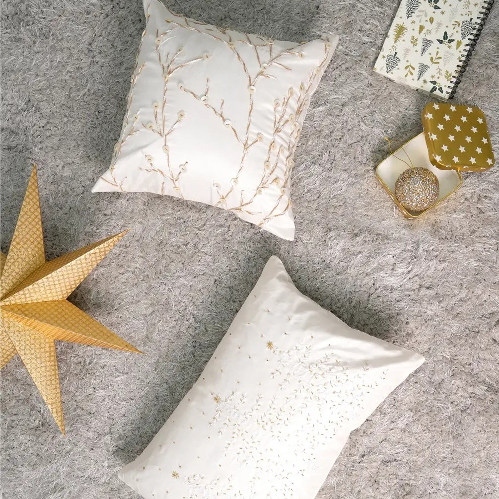 - Design: Detailed embroidered Christmas trees with coordinating pom-pom accents for a festive yet refined look
