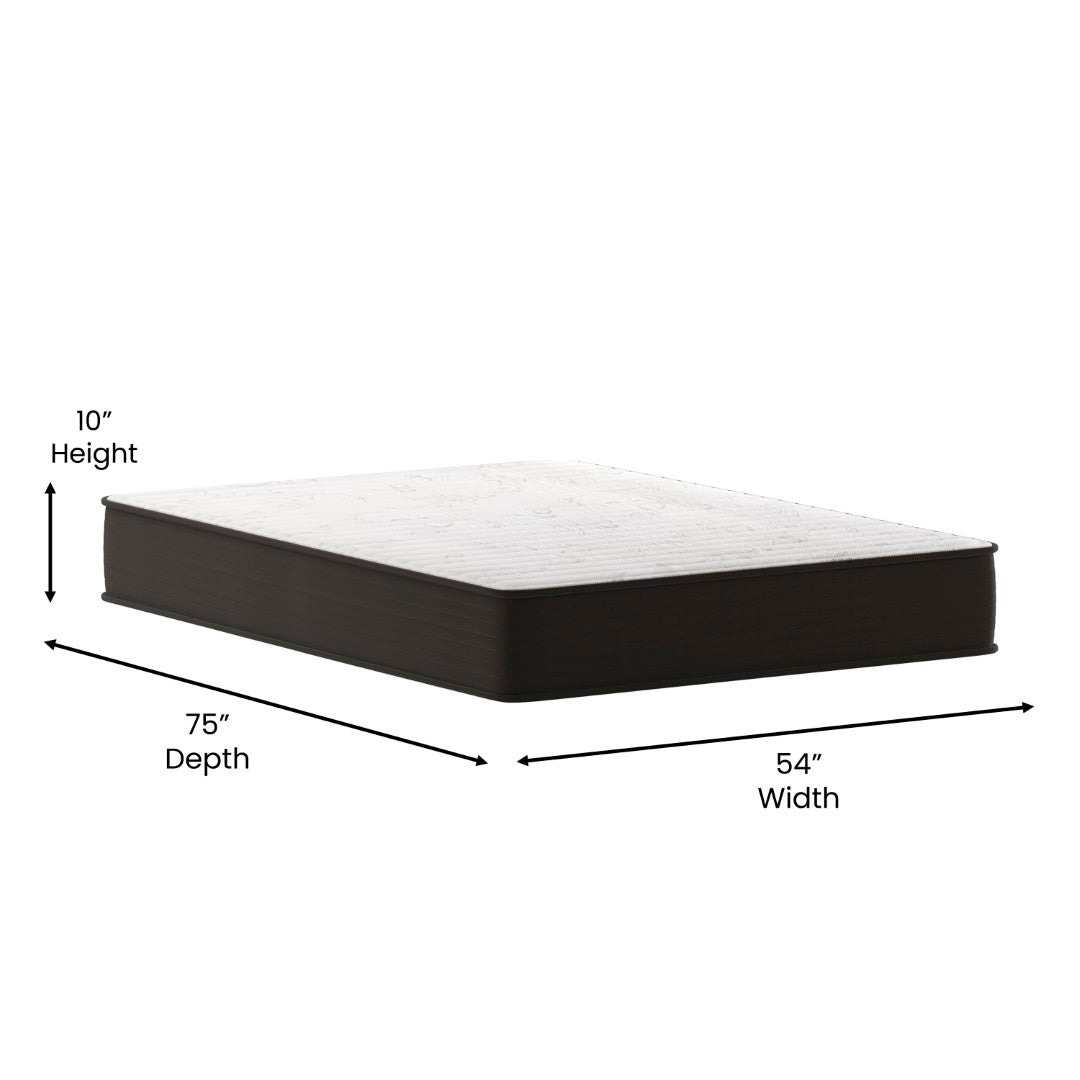 A versatile, budget-friendly hybrid designed for students, first apartments, RV living, or guest rooms — this 10" full-size mattress combines pressure-relieving high-density foam with individually wrapped pocket springs for balanced comfort, motion isolation, and durable support. The breathable knitted cover enhances airflow while the CertiPUR-US certified foam assures low VOCs and freedom from harmful chemicals. Packaged compressed for easy delivery and setup, it’s a practical, ready-to-use sleep solution that expands to full comfort within 48–72 hours.