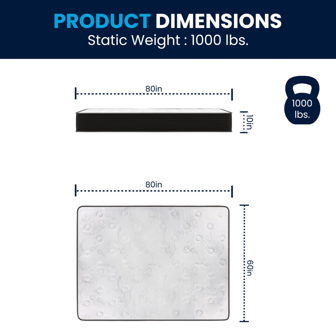 - Dimensions: 54"W x 75"D x 10"H — Full size, 10-inch profile (prominent)