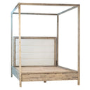 - Short Description: MODERN CASUAL PLATFORM CANOPY BED MADE FROM SOLID ACACIA WOOD FINISHED IN A LIGHT WARM WASH AND ACCENTED WITH A LINEN CHANNEL TUFTED HEADBOARD.