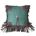 Elevate your home décor with the stunning Cheyenne Scalloped Edge Throw Pillow, a perfect blend of rustic charm and sophisticated design. This exquisite pillow features intricate floral paisley engravings and luxurious faux leather detailing, making it an ideal accent for any space inspired by Western aesthetics. Available in vibrant sunset red or serene turquoise, it showcases a faux tooled leather center panel, beautifully complemented by a striking silver concho and elegantly studded scalloped corners. The fringed edge adds a touch of flair, creating a rich, inviting atmosphere that pairs seamlessly with other pieces from the Cheyenne collection.