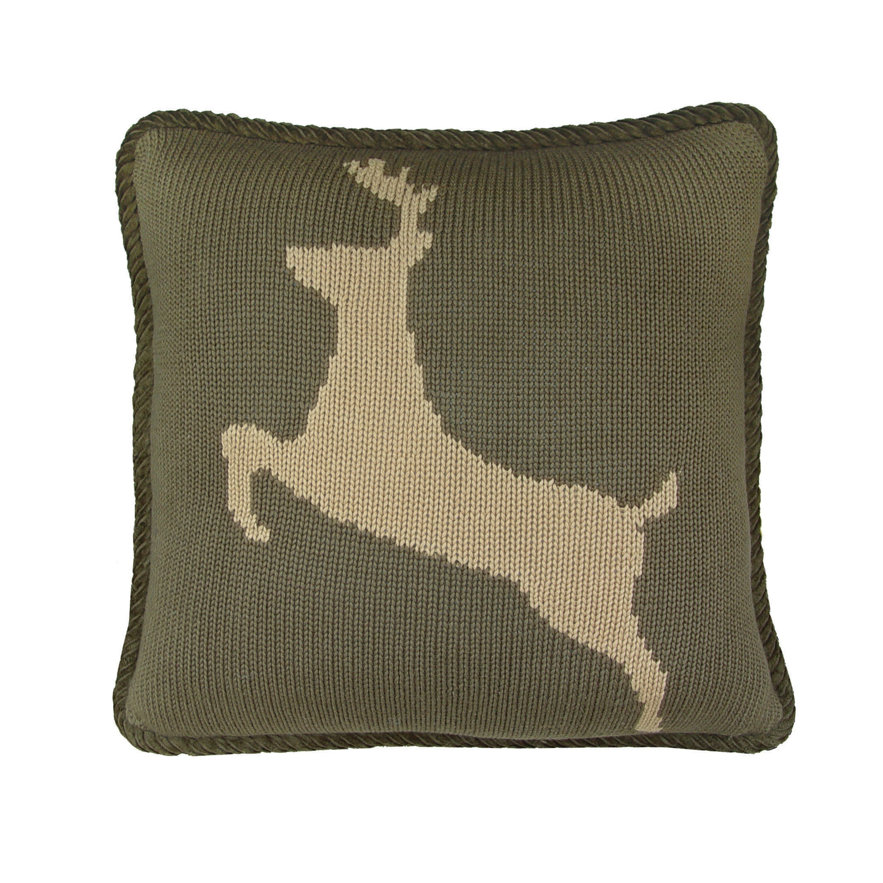 - Beautiful knitted design showcasing a khaki deer motif on a light olive green background