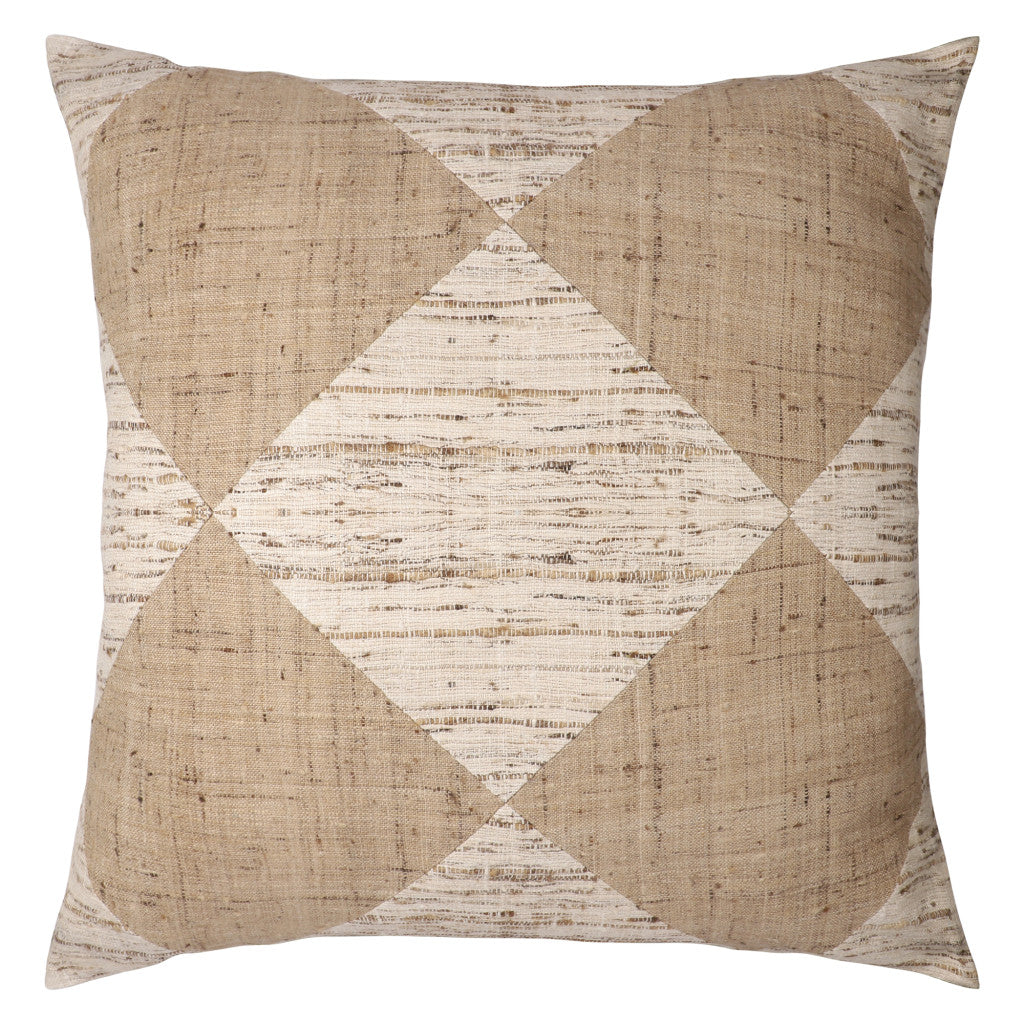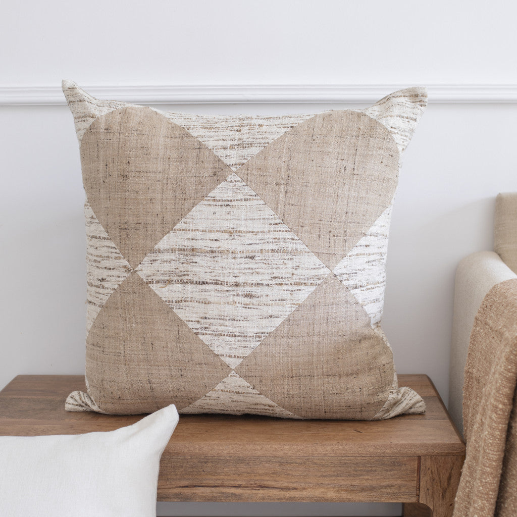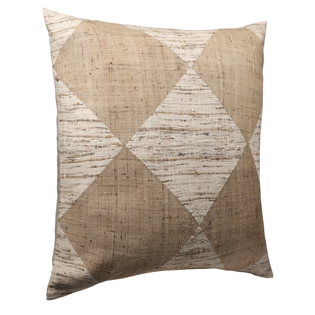 - Hand-woven accent throw pillow with a modern square shape in brown.