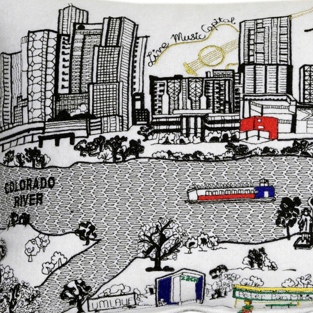 - Features an eclectic Atlanta Georgia cityscape / skyline on front, with solid color on the back.