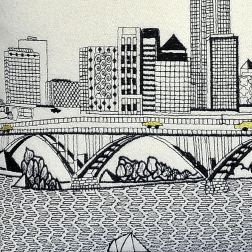 - Features an eclectic Cleveland Ohio cityscape / skyline on front, with solid color on the back.