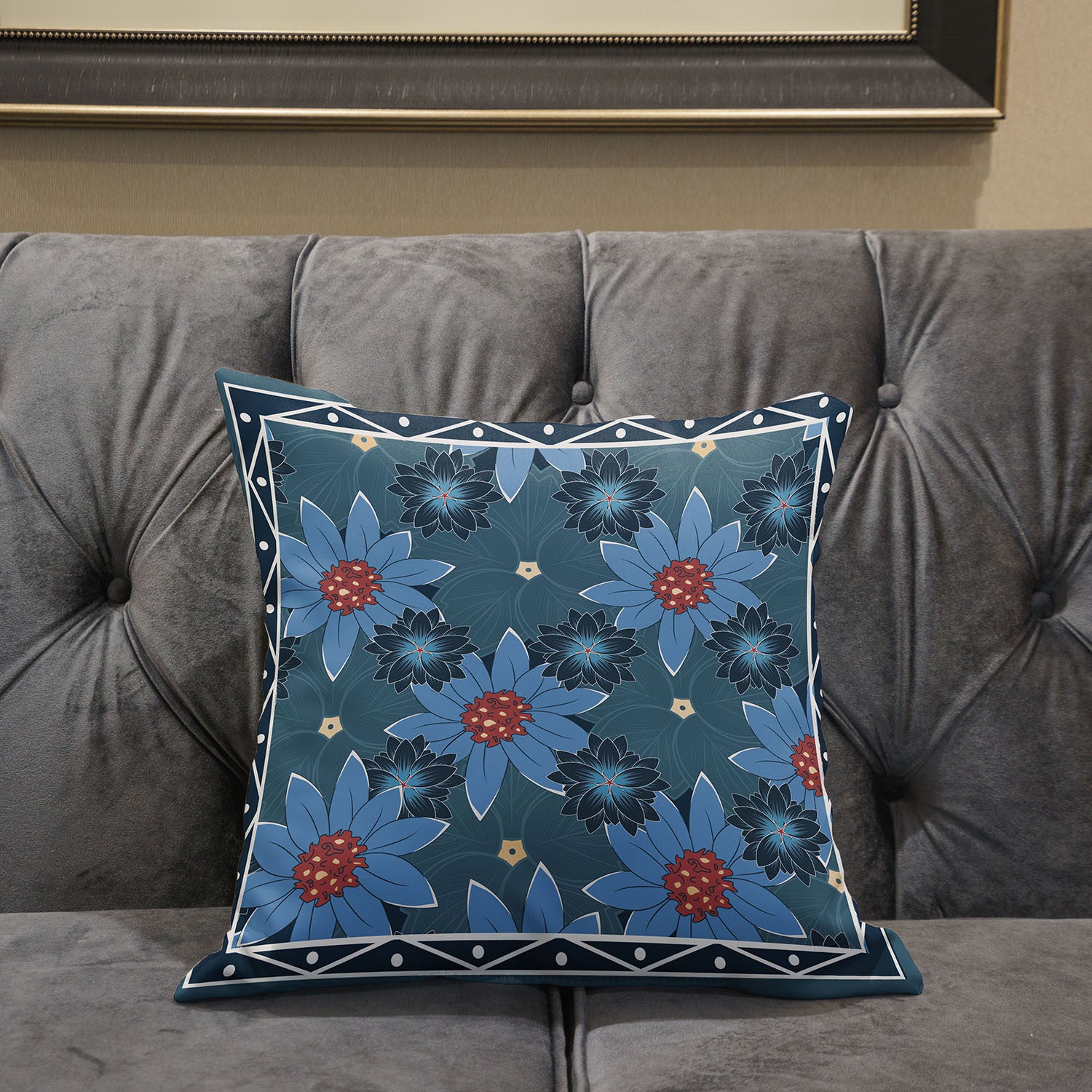 - Features a traditional floral design.
