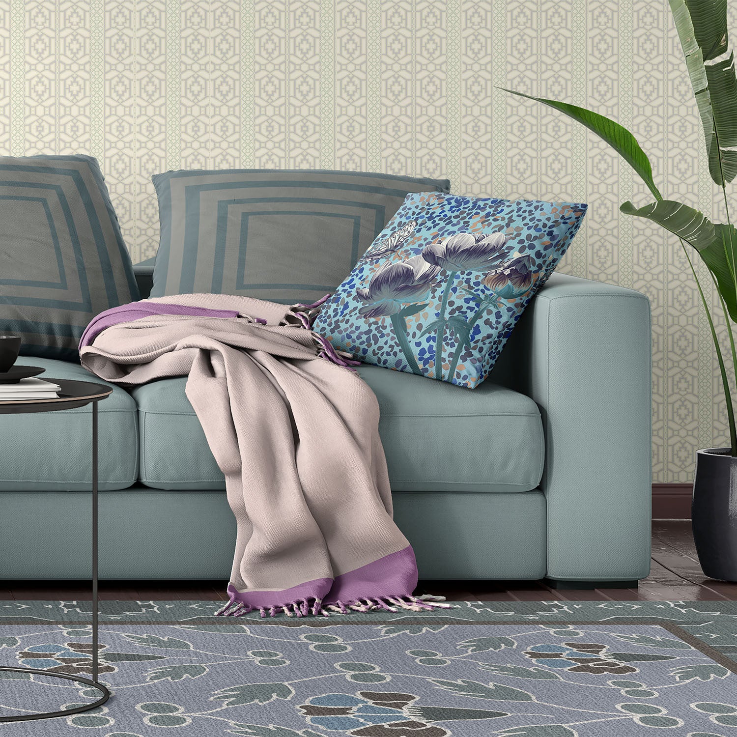 - Features a traditional floral design.