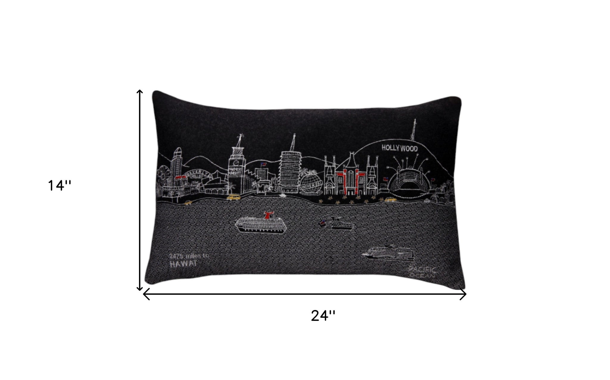 - Features an eclectic Los Angeles California cityscape / skyline on front, with solid color on the back.
