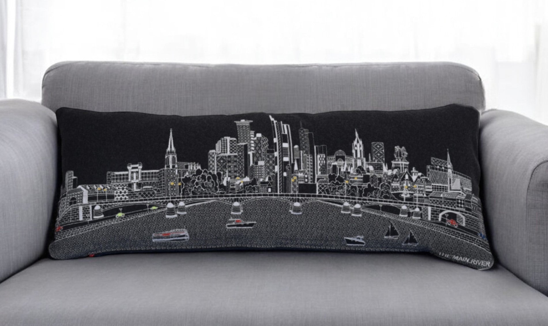 - Features an eclectic Frankfurt Germany cityscape / skyline on front, with solid color on the back.