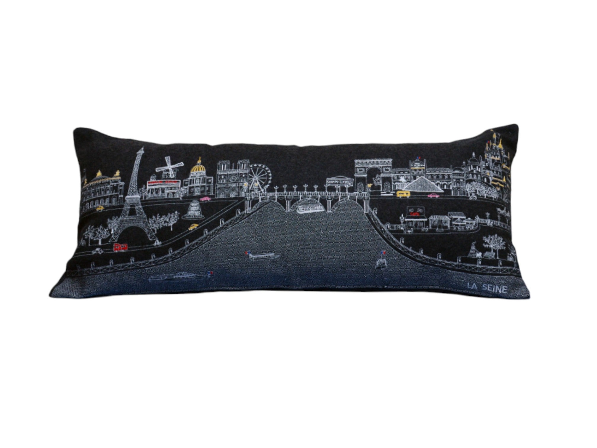 - Features an eclectic Paris France Cityscape and skyline on front with solid color on the back.