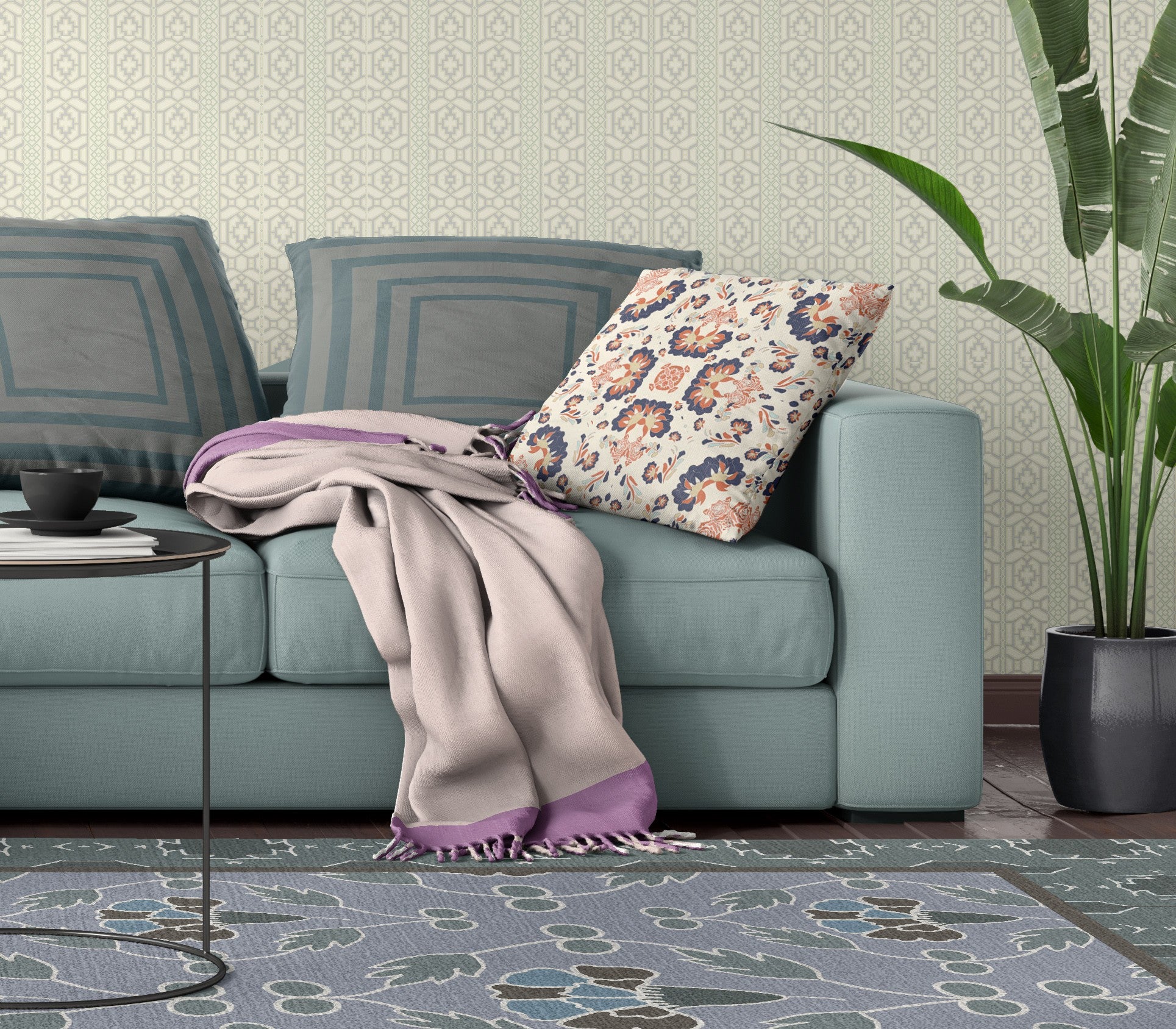 - Features a traditional floral design.