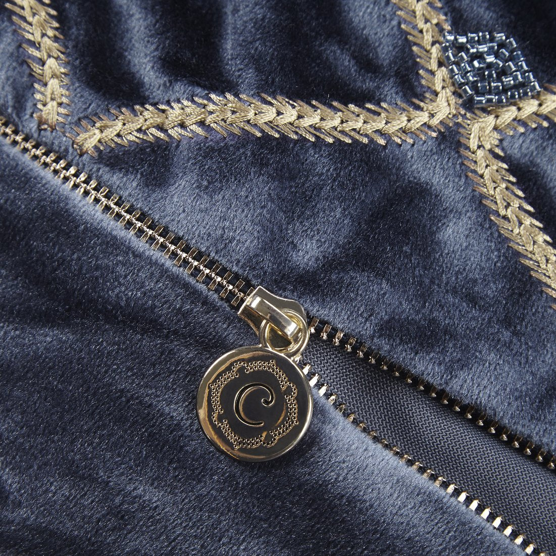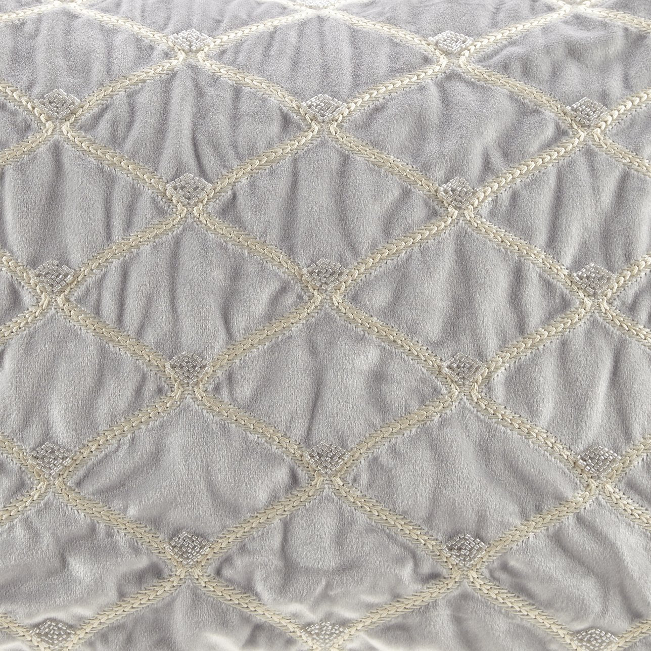 - Fabric & Finish: Opulent velvet cover with foxtail stitched design and delicate net patterning enhanced by hand‑beaded embellishments for subtle shimmer and texture.