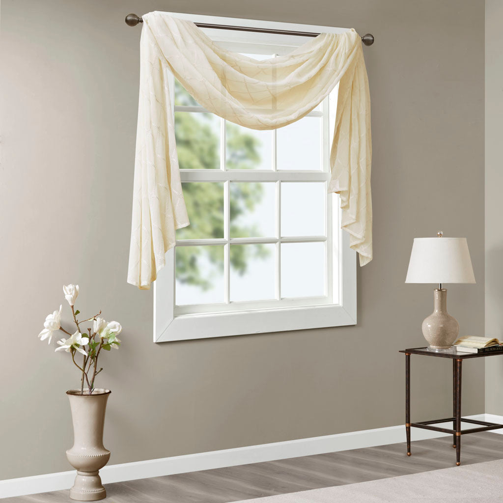 Refresh your windows with a delicate, elegant accent that softens light and enhances any room. This embroidered sheer scarf features a refined diamond motif on lightweight fabric for a graceful, airy look—ideal for layering over blinds or topping coordinating panels (sold separately).