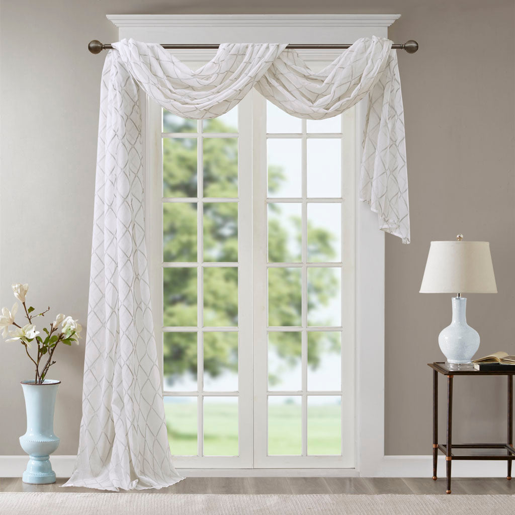 Refresh your windows with a delicate, elegant accent that softens light and enhances any room. This embroidered sheer scarf features a refined diamond motif on lightweight fabric for a graceful, airy look—ideal for layering over blinds or topping coordinating panels (sold separately).