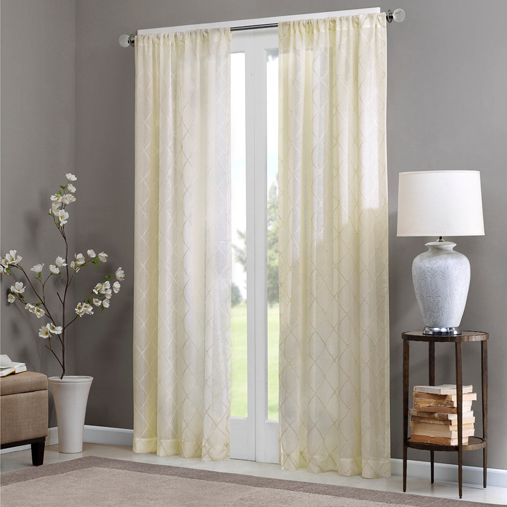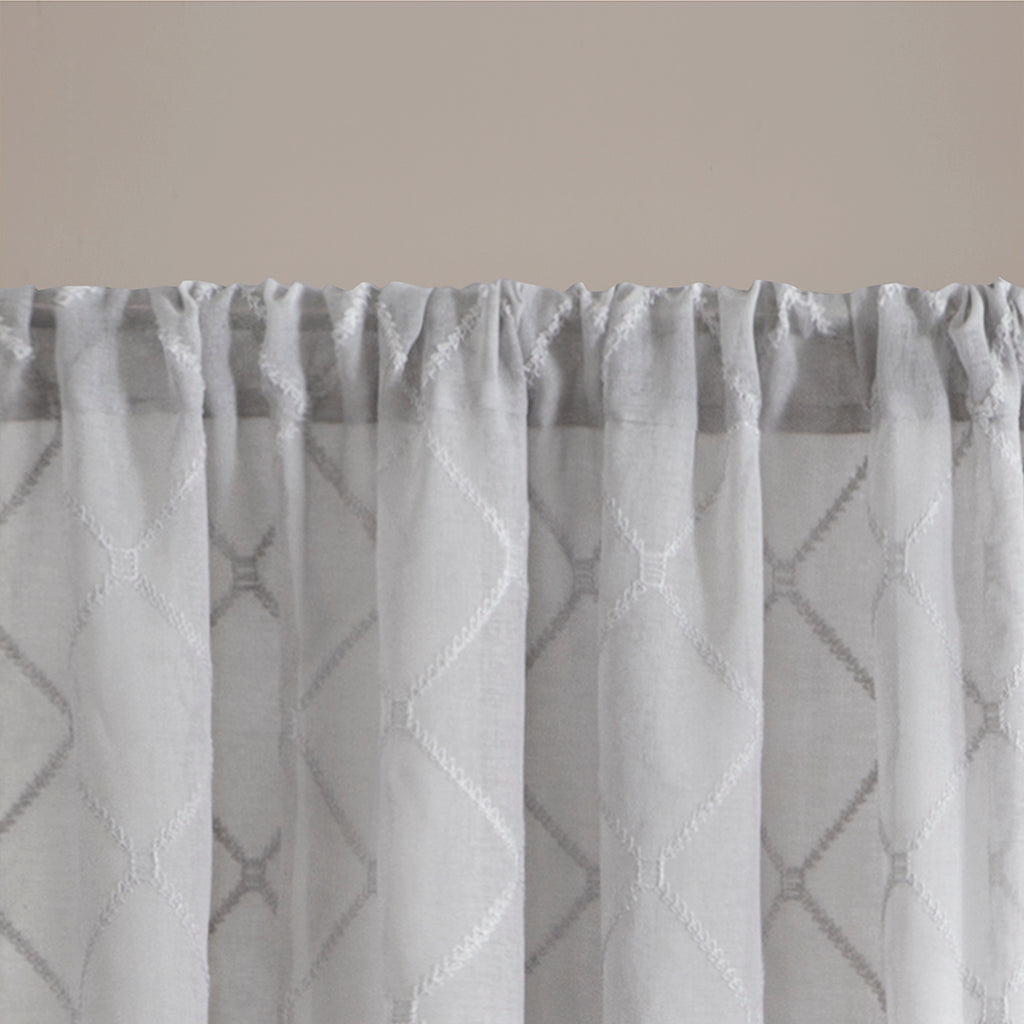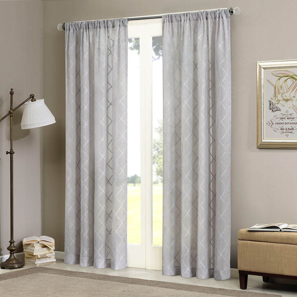 Bring soft elegance and subtle texture to your windows with this airy diamond-embroidered sheer curtain. Its lightweight fabric gently filters light while the embroidered diamond pattern adds refined visual interest—perfect for layering with heavier drapes or using alone for a breezy, polished look.
