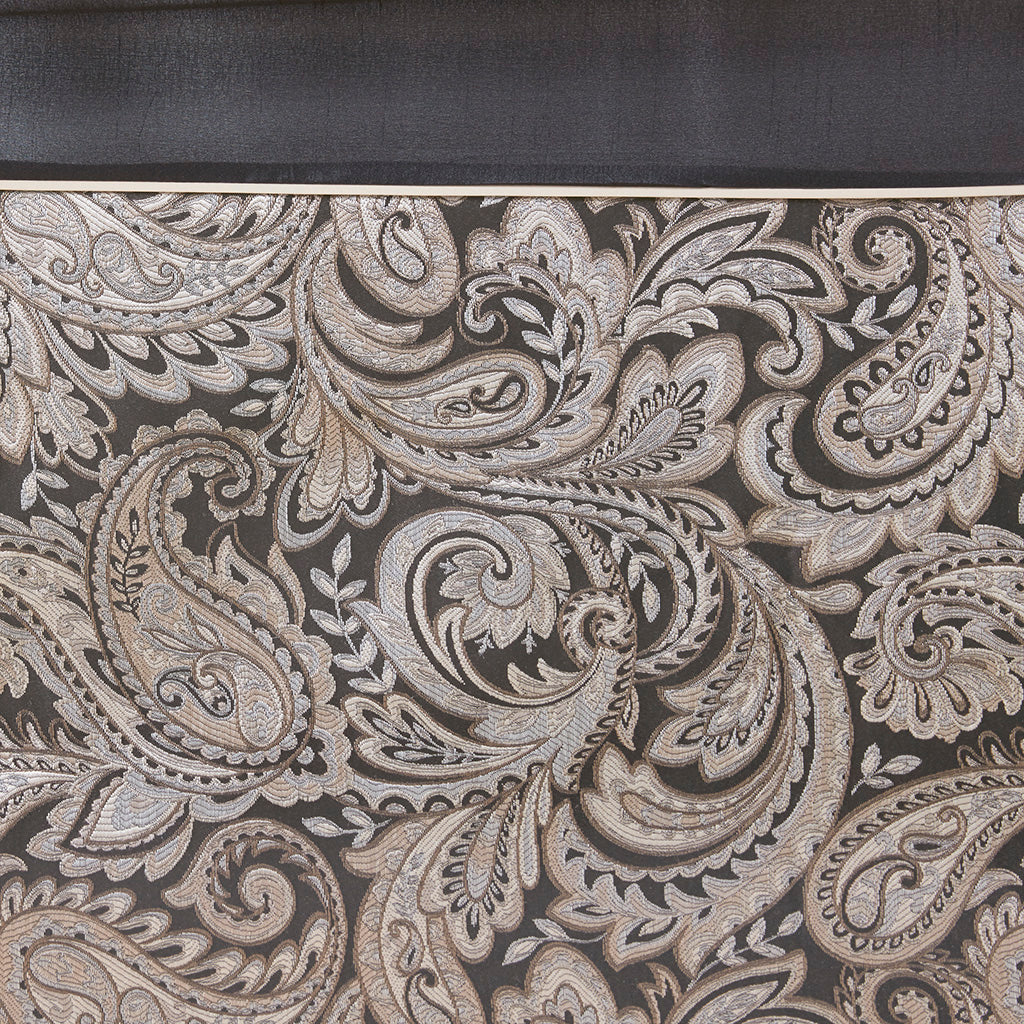 - Woven polyester jacquard with an updated paisley motif for a textured, upscale appearance