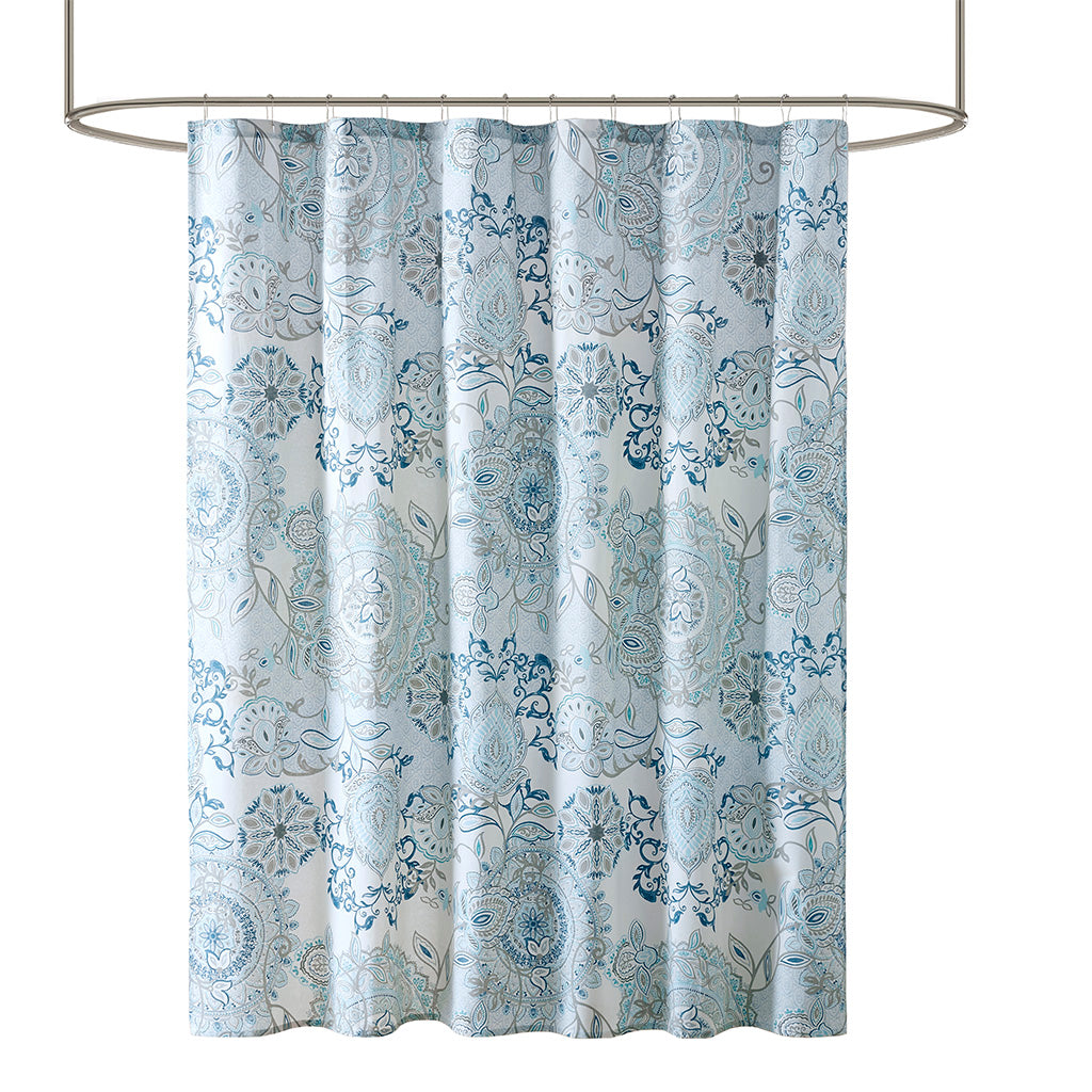 Refresh your bathroom with a serene, painterly touch—this printed cotton shower curtain combines soft blue florals and medallion motifs on a neutral watercolor ground for a calm, sophisticated look. The 100% cotton percale gives a natural, breathable feel while OEKO-TEX certification assures the fabric is free from harmful substances. Easy-care and machine washable, it’s a stylish, health-conscious update that pairs seamlessly with a range of bath decor.