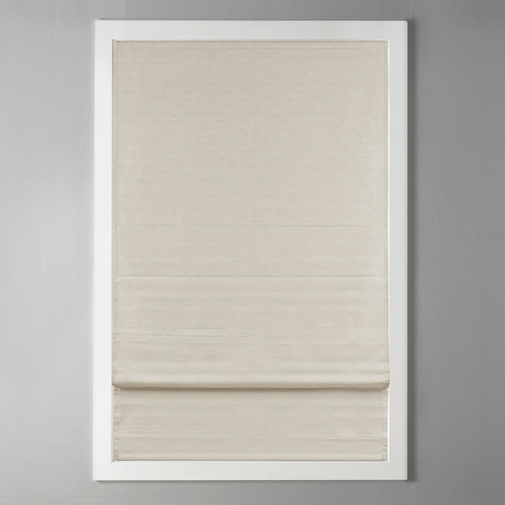 Refresh any room with a sleek, modern Roman shade that combines luxe faux-silk texture, practical room-darkening performance, and cordless convenience. The tonal ivory print and soft sheen lend an elegant, tailored look while OEKO-TEX certification and a thermal foambacking deliver safer materials, improved energy efficiency, and enhanced privacy. Designed for easy installation and low-maintenance care, this shade is a polished, functional upgrade for living rooms, bedrooms, nurseries, and more.