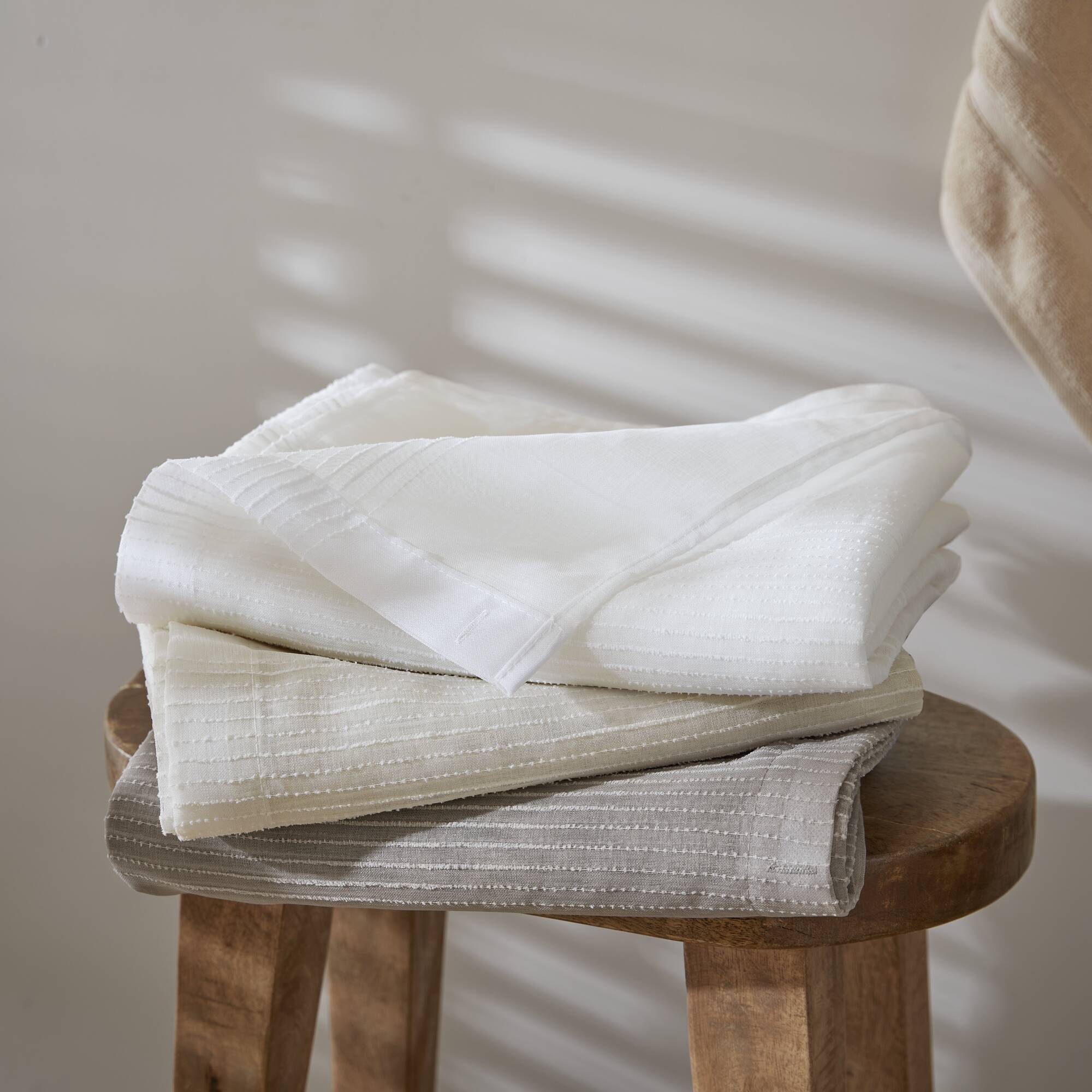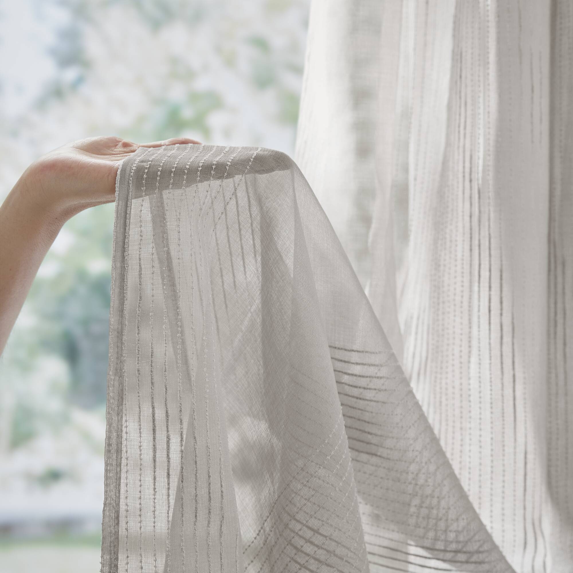 - Material & Finish: Lightweight sheer fabric with a woven striped texture that provides a soft, semi-transparent appearance and elegant drape.