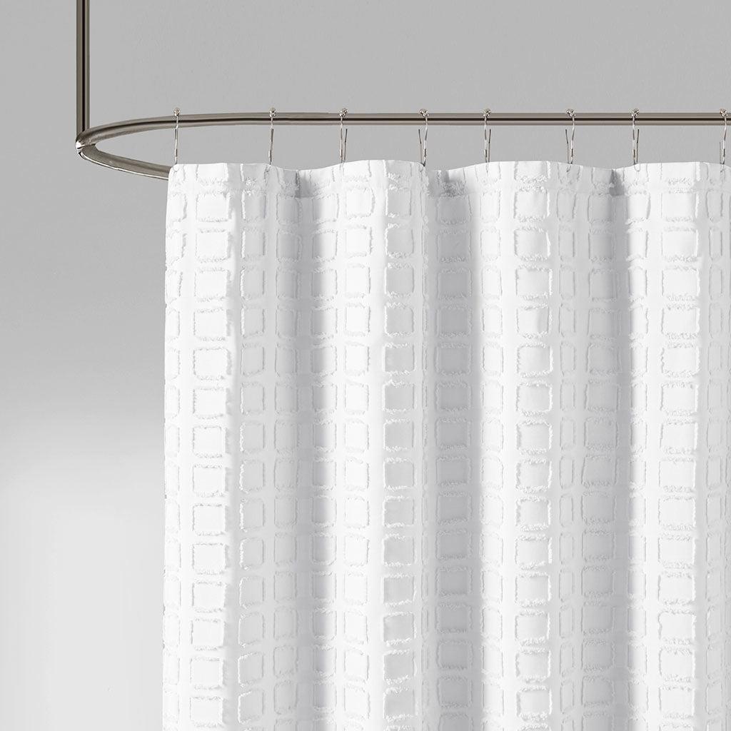Give your bathroom a fresh, modern upgrade with this textured woven shower curtain that blends subtle geometric style and easy-care practicality. The clipped square weave adds depth and visual interest to a clean, solid white backdrop—ideal for minimalist, contemporary, or transitional bathrooms.
