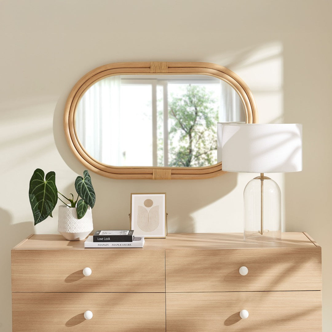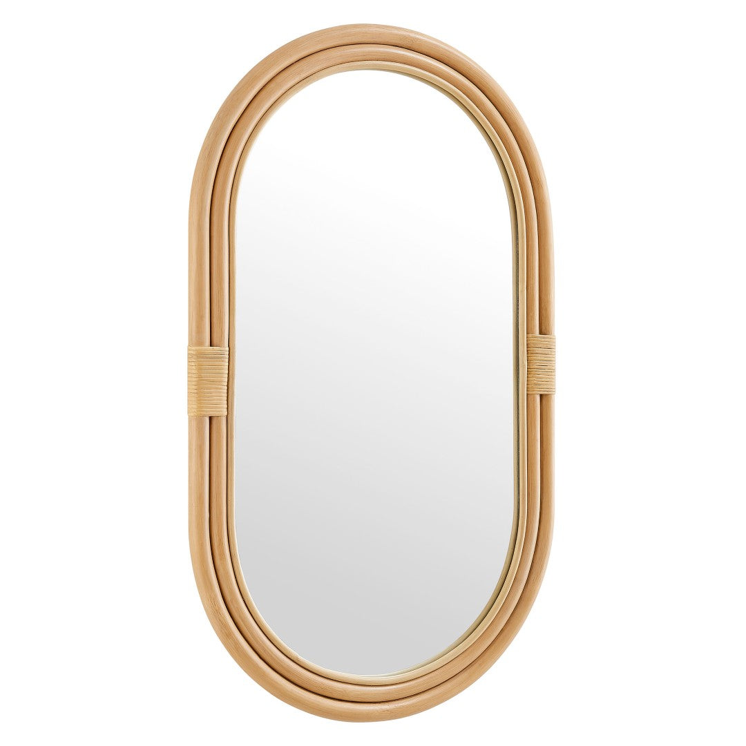 Add a warm, coastal-inspired focal point to any room with this handwoven oval rattan wall mirror. Its smooth, thick rattan frame and versatile orientation make it equally suited for a bathroom vanity, bedroom, entryway, or living room, delivering natural texture and durable construction in a timeless silhouette.