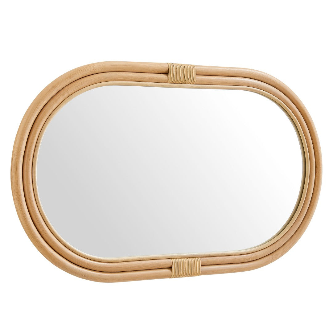 - Oval Wall Mirror Horizontal or Vertical Orientation Rattan Frame Ready to Hang