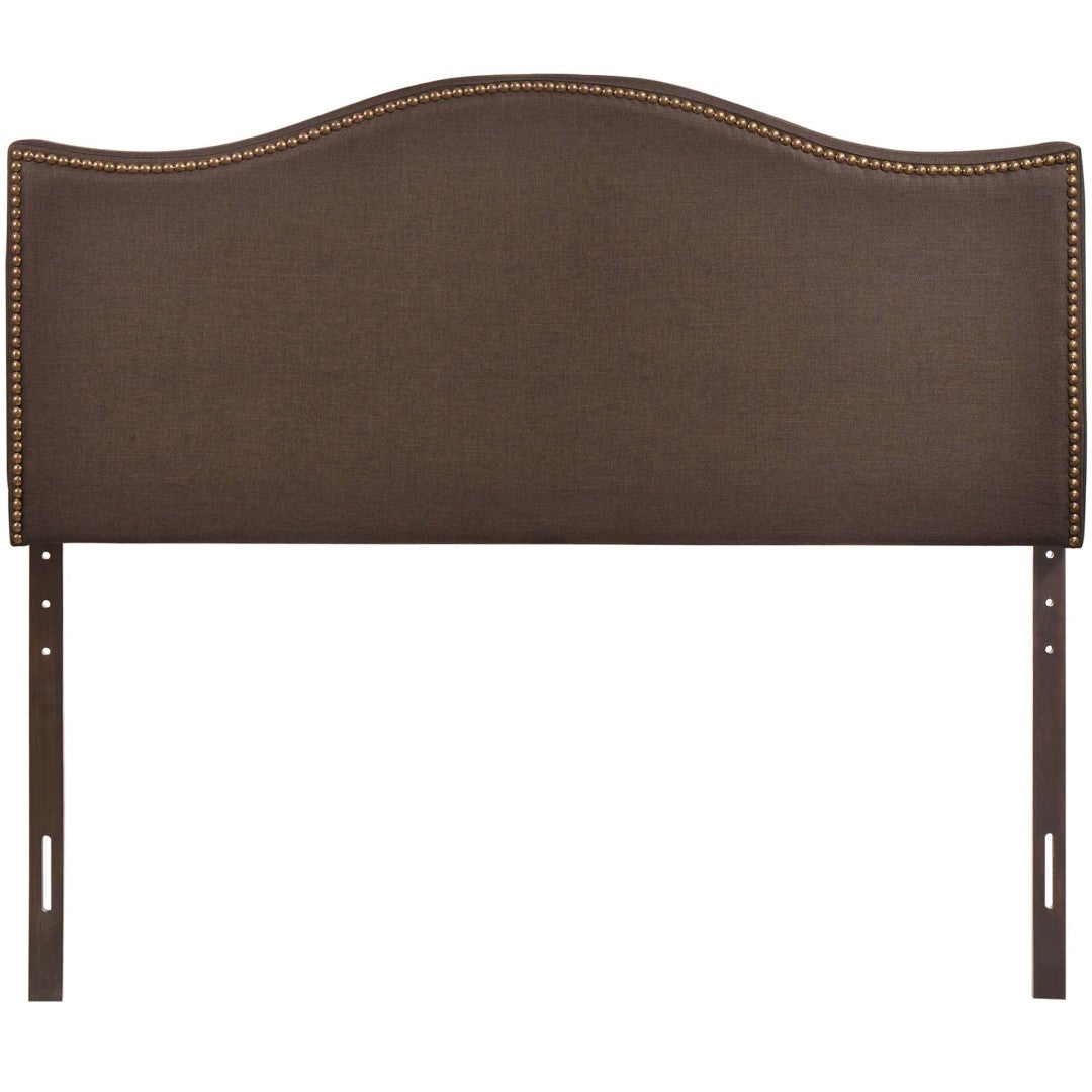 - Contemporary headboard Fashionable curve design Nail button trim Fine linen upholstering Particleboard and solid wood frame Mounts in 4 Locations