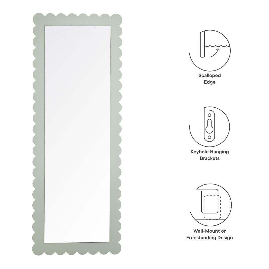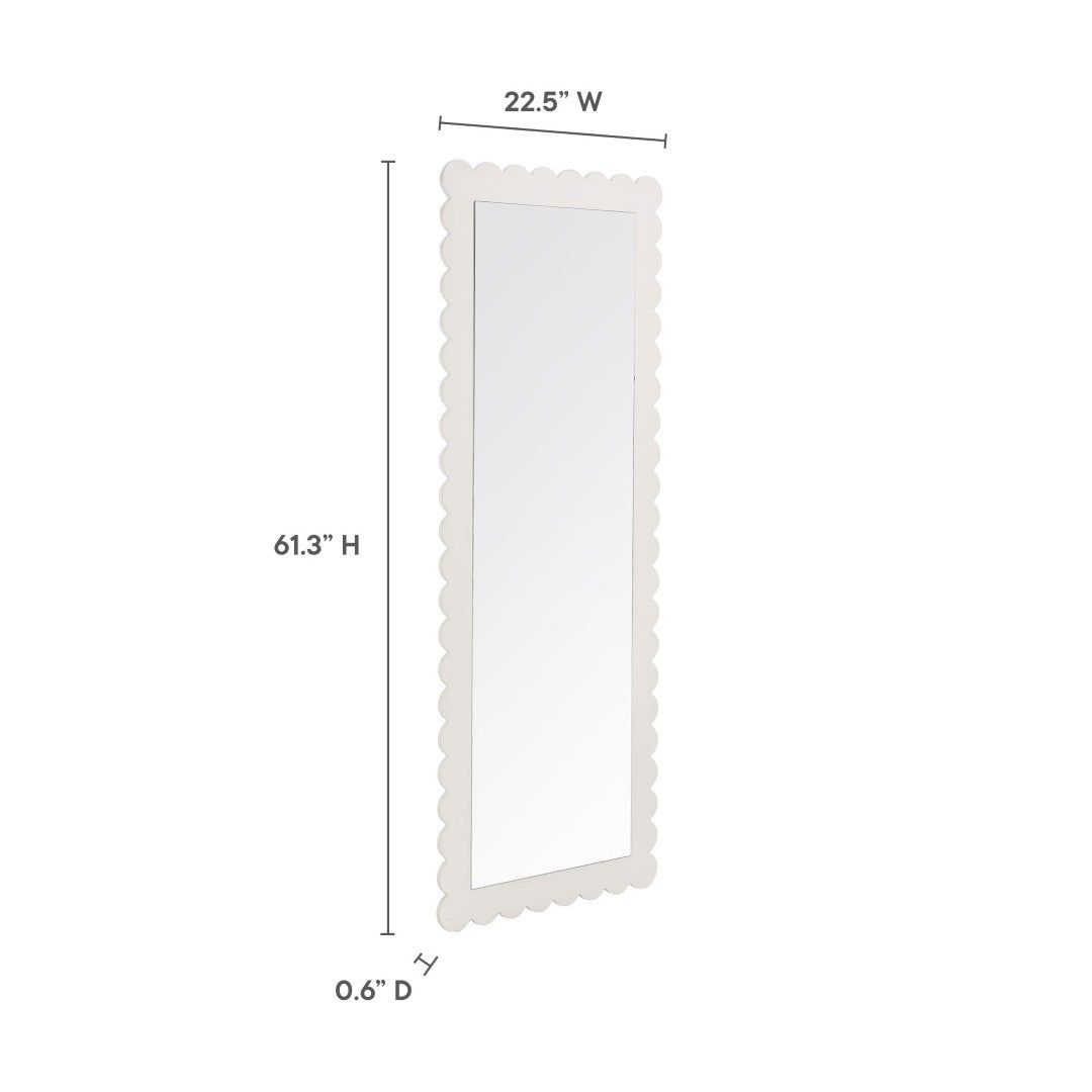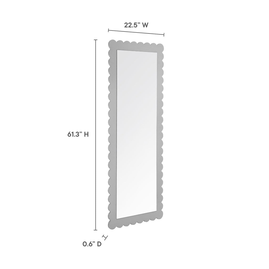 Add a playful yet refined focal point to your decor with this scalloped-edge full-length mirror. The Emmeline's gentle wavy silhouette and sturdy frame offer both decorative charm and everyday practicality—perfect for outfit checks, expanding visual space, or anchoring a bedroom, entryway, or living room.