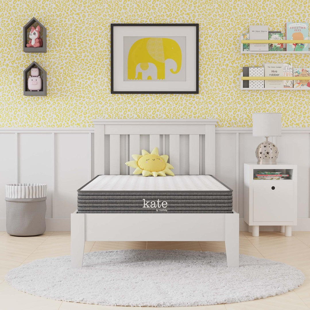 Enjoy restful nights with the Kate 6" Twin Mattress — a compact, comfortable sleep surface engineered for everyday use in children's rooms, guest spaces, dorms, or small apartments. Combining the classic support of a Bonnell spring system with a soft foam comfort layer and safety-tested materials, this mattress balances buoyant support and surface plushness while remaining lightweight and easy to set up.