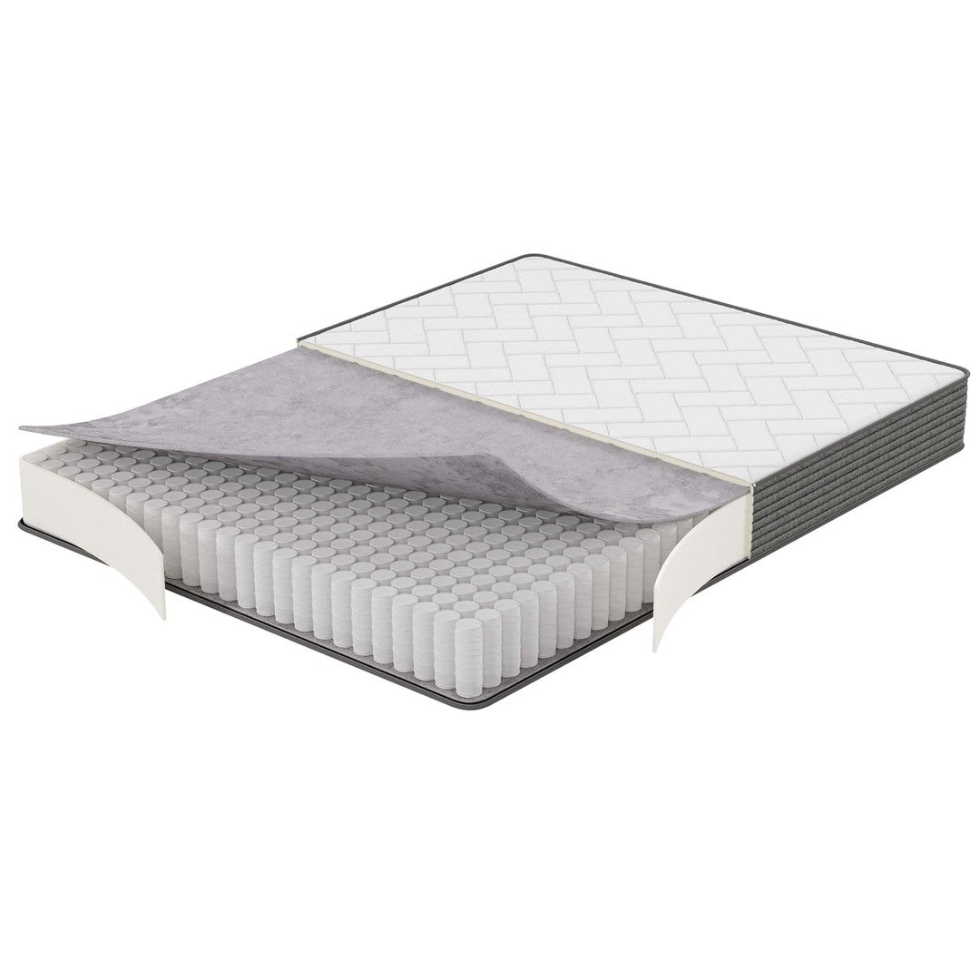 - Padded Polyester Quilt Top 0.4" Cushioning Foam Layer 7.2" Individually Wrapped Coils Felt Liners Above/Below Innerspring Fire Resistant Polyester Barrier Vacuum-packed New from the Factory Unrolls and Decompresses in 2-3hrs