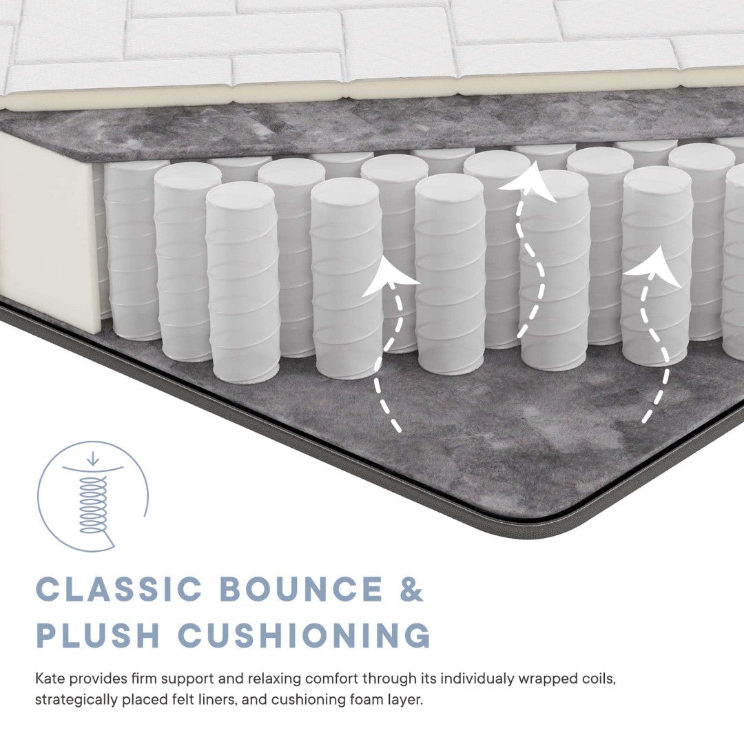Enjoy restorative sleep on a mattress engineered for classic support and everyday comfort. The Kate 8" Twin offers a balanced feel—springy yet cushioned—making it ideal for kids, guests, dorm rooms, or compact apartments. Thoughtful construction, tested safety features, and convenient compressed shipping let you set up a dependable bed quickly.